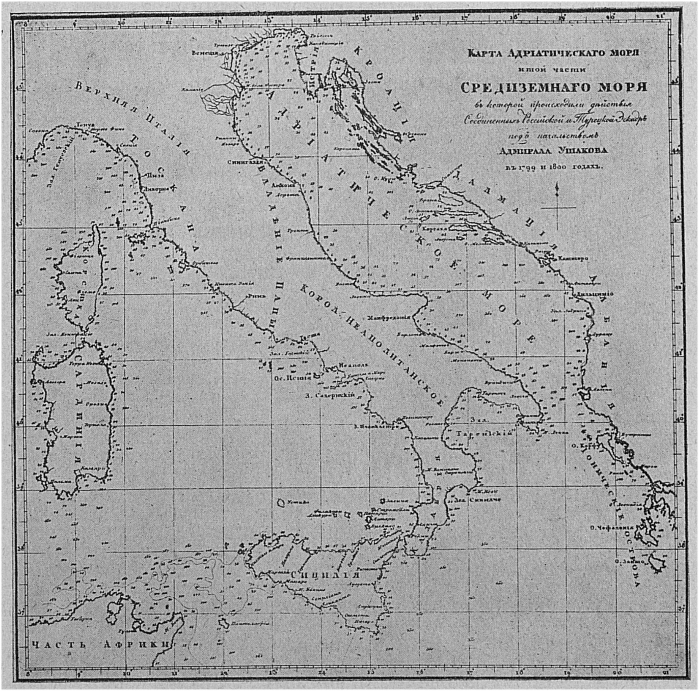Адриатическое море и та часть Средиземного моря, в которой происходили действия Соединенных Российской и Турецкой эскадры под начальством адмирала Ушакова в 1799 и 1800 годах