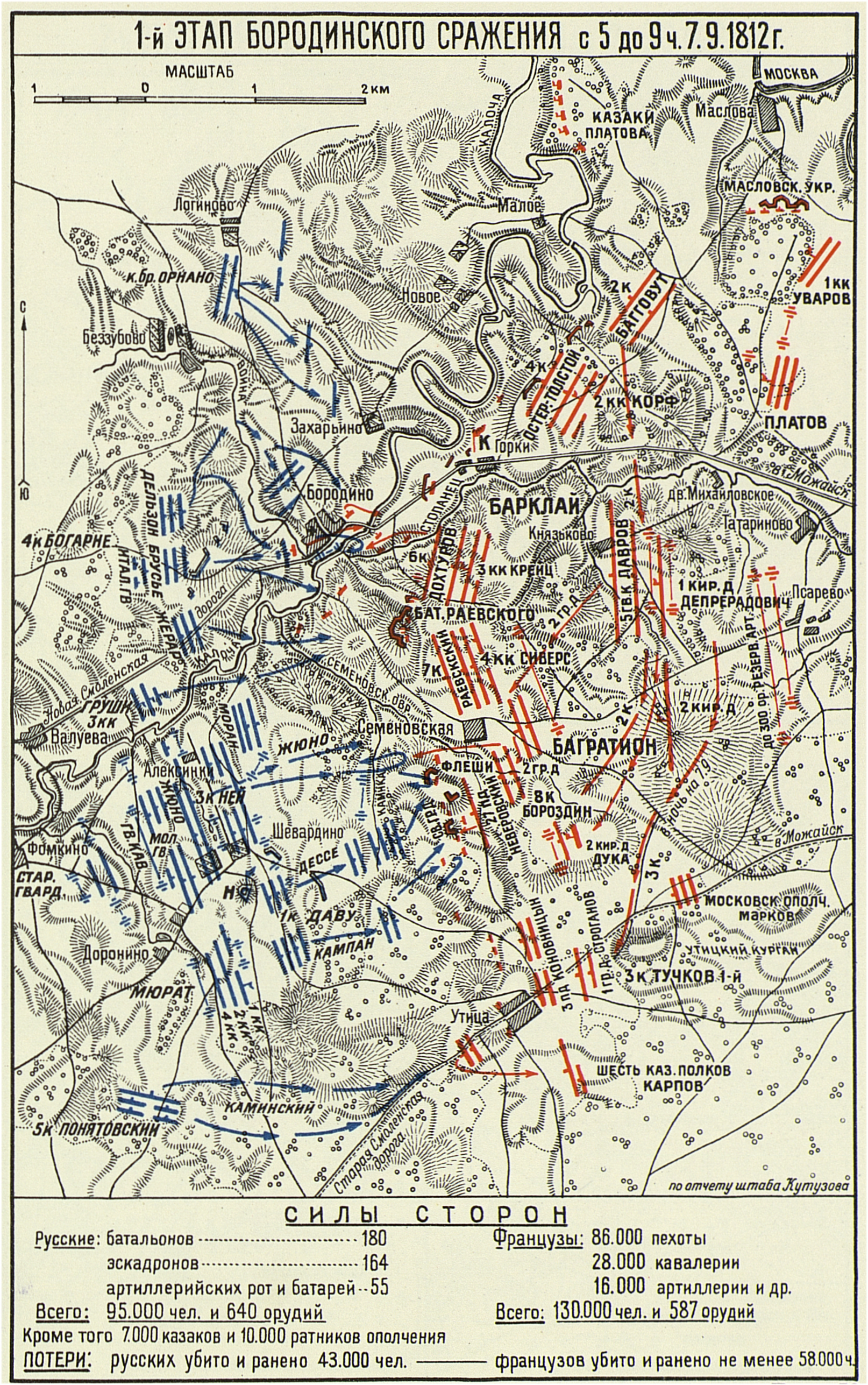 Первый этап Бородинского сражения с 5 до 9 часов 7 сентября 1812 года