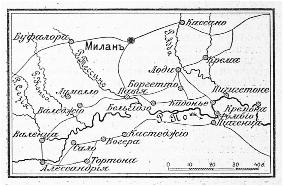 Район сражения 10 мая 1796 года у города Лоди в ходе Итальянской кампании Бонапарта