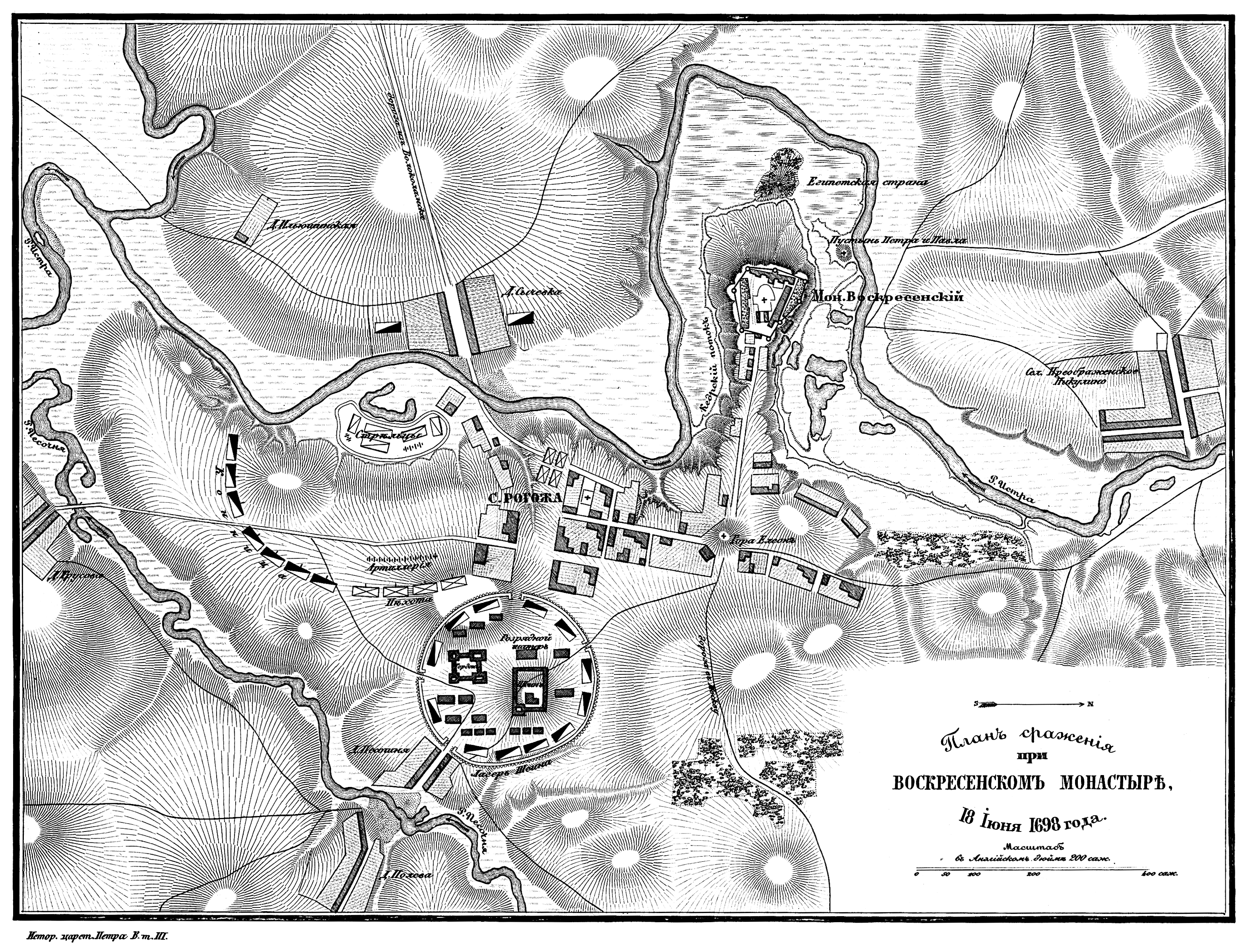 План сражения при Воскресенском монастыре 18 июня 1698 года.