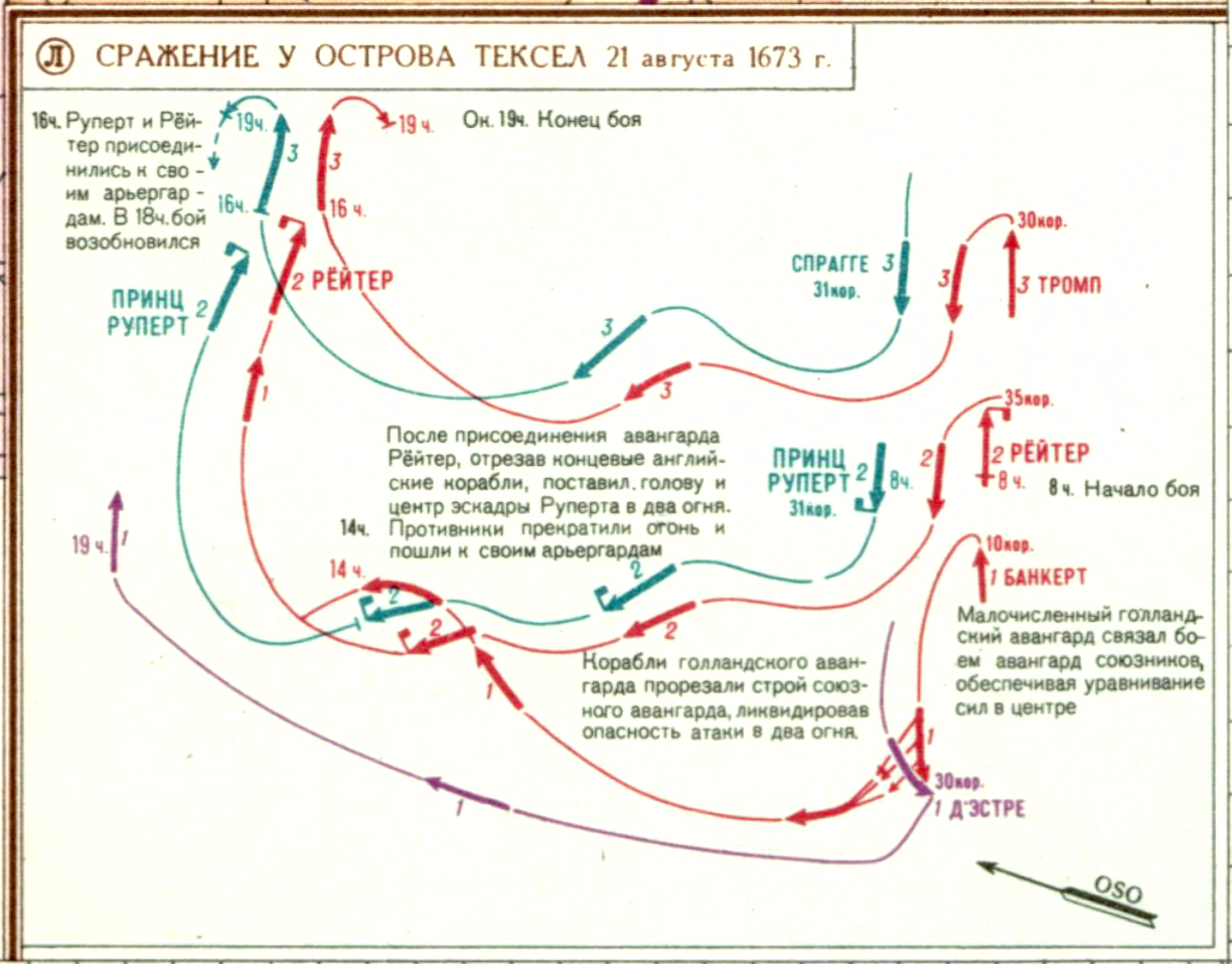 Англо-Голландские войны 1652-1674 гг. (Л) Сражение у острова Тексел 21 августа 1673 г.