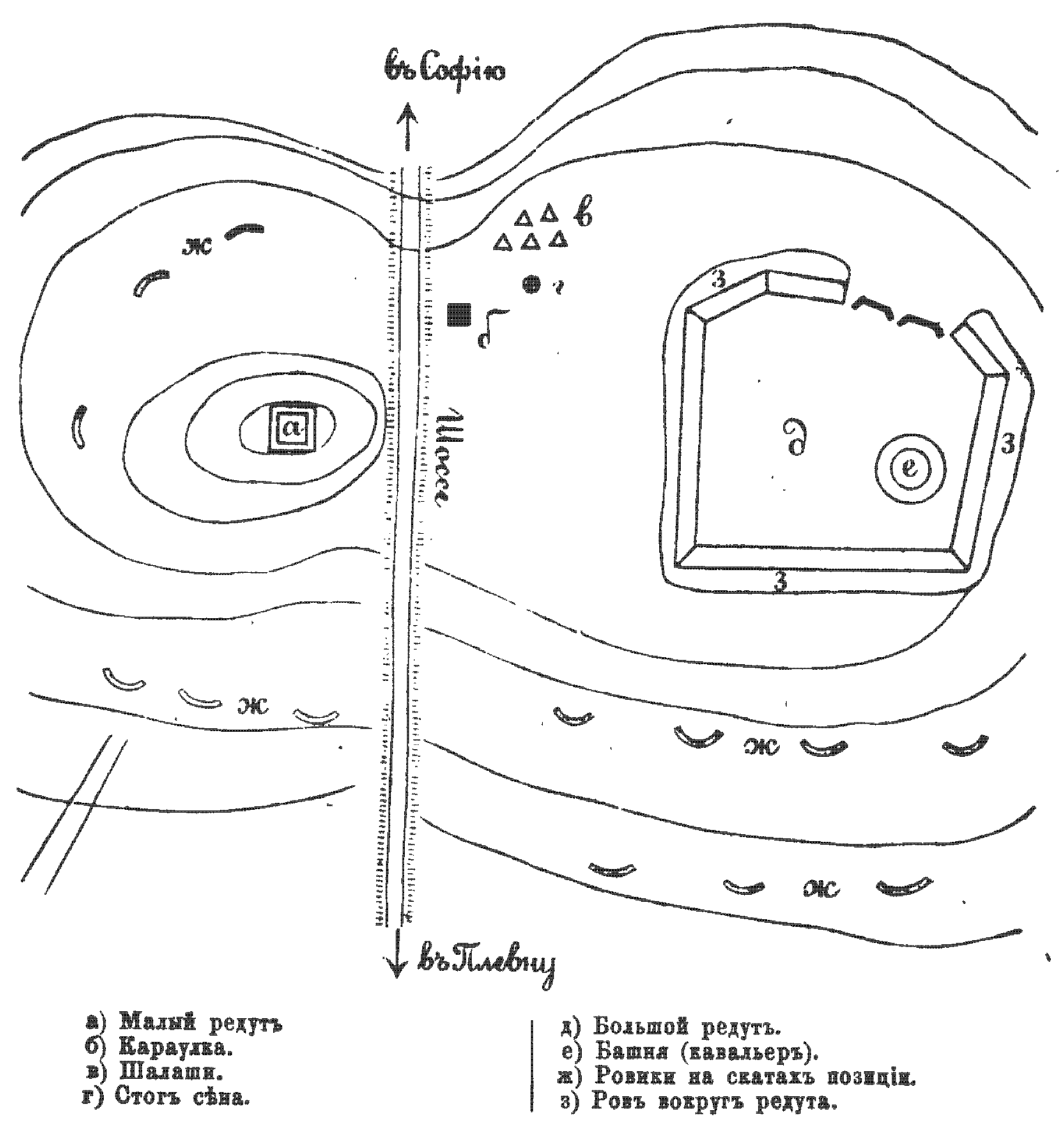 Схема расположения турецких укреплений у Горняго Дубника.