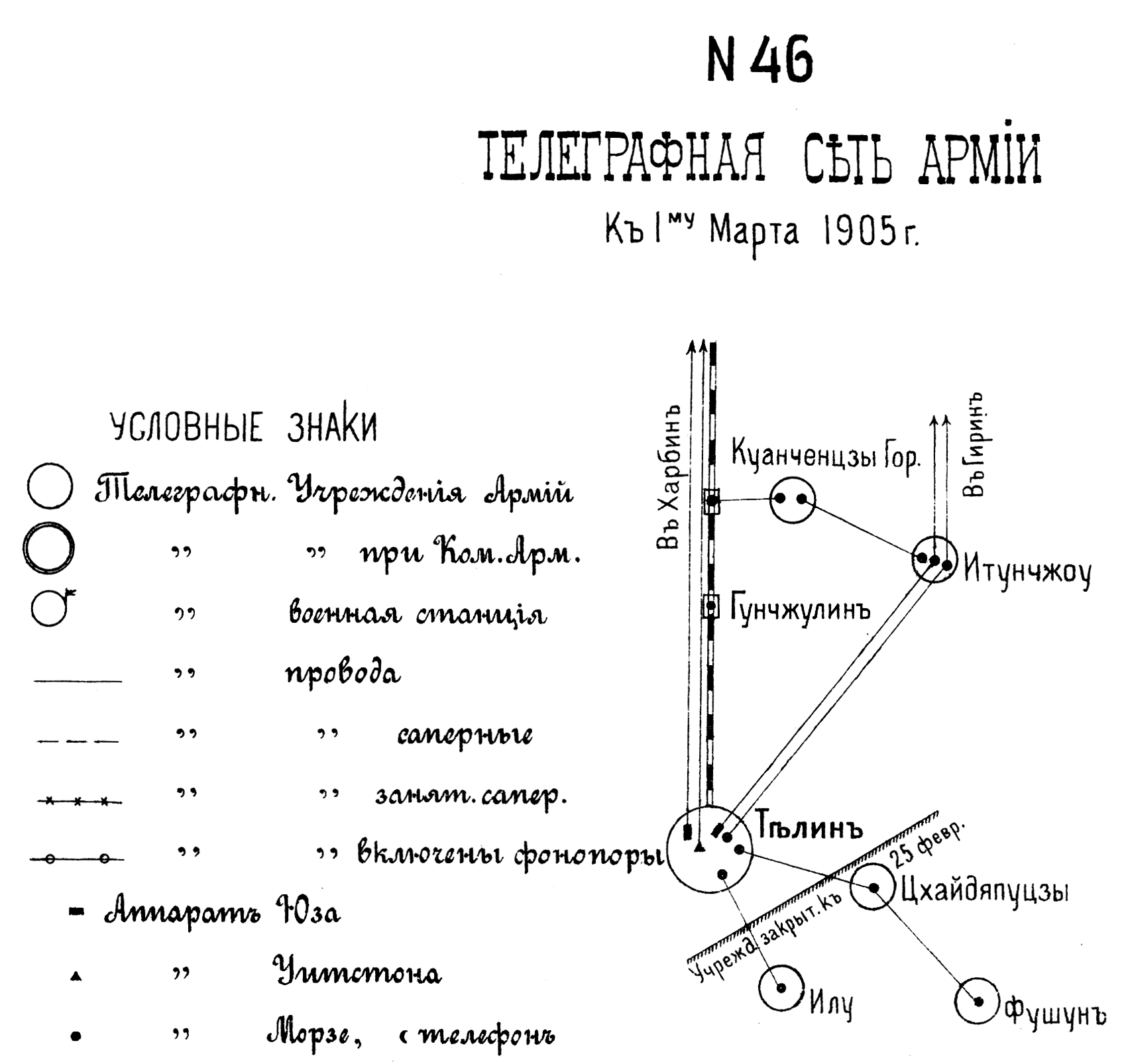 Телеграфная сеть армии к 1 марта 1905 года