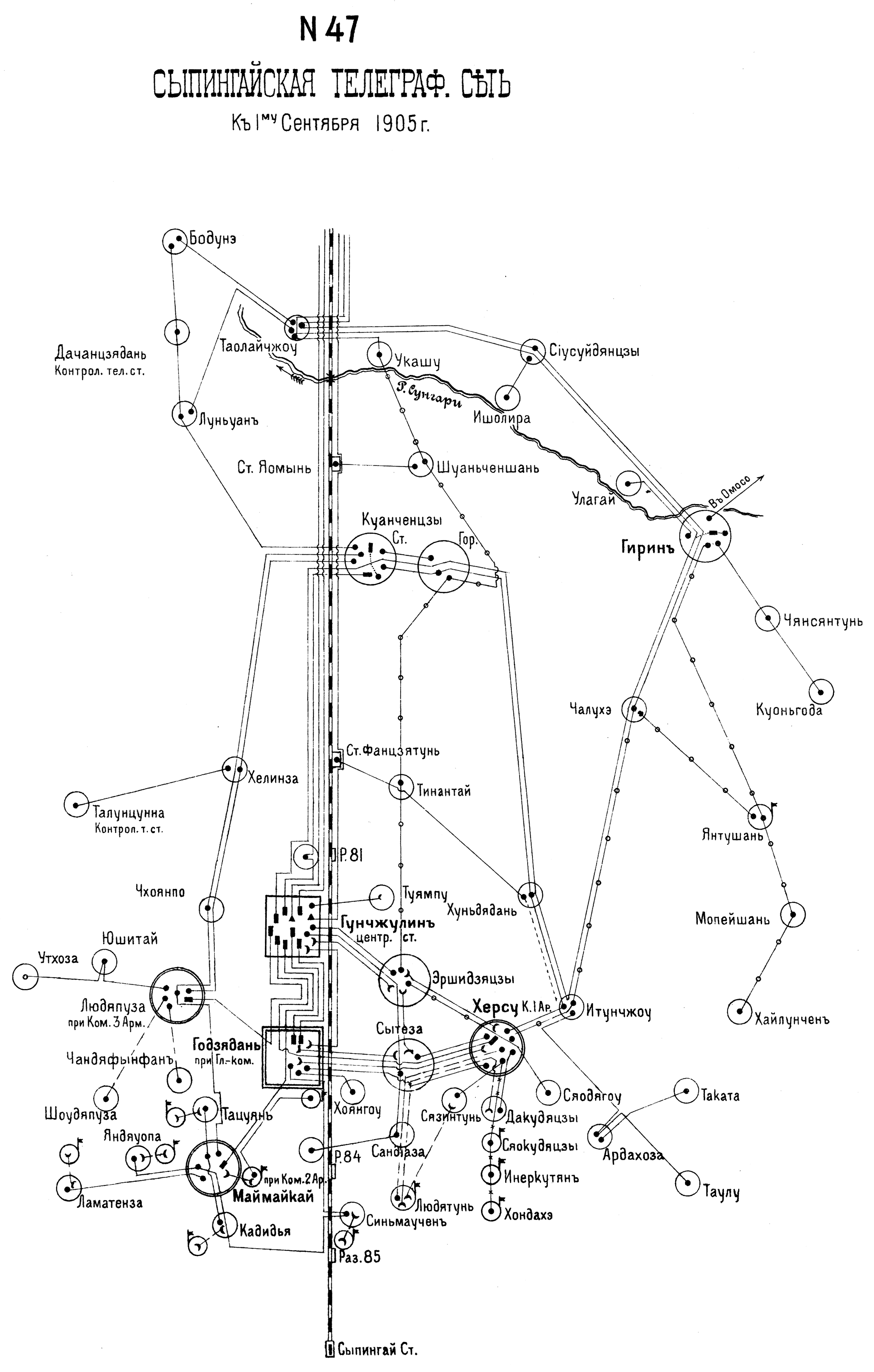 Сыпингайская телеграфная сеть к 1 сентября 1905 года
