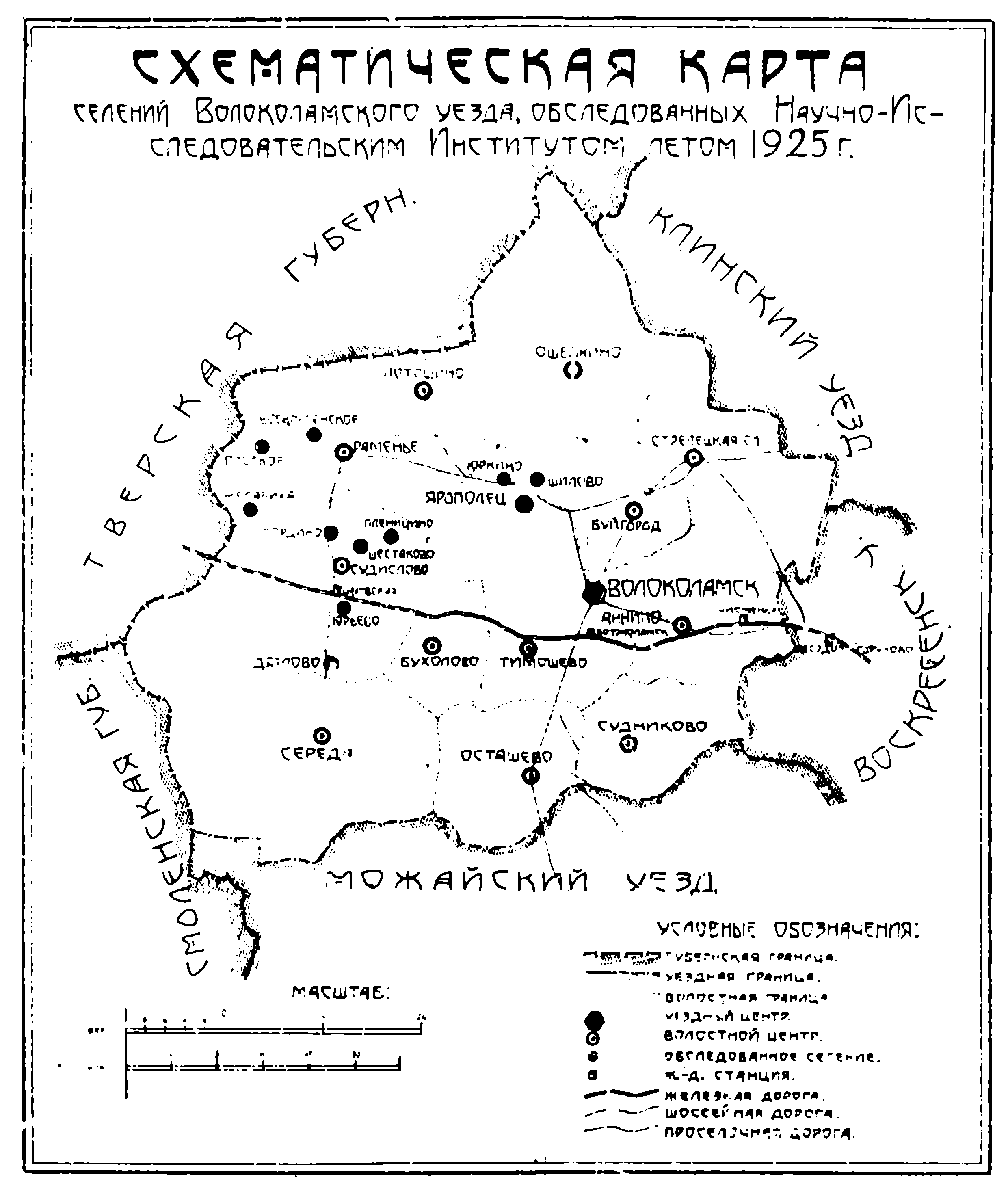 Схематическая карта селений Волоколамского уезда, обследованных Научно-Исследовательским Институтом летом 1925 года