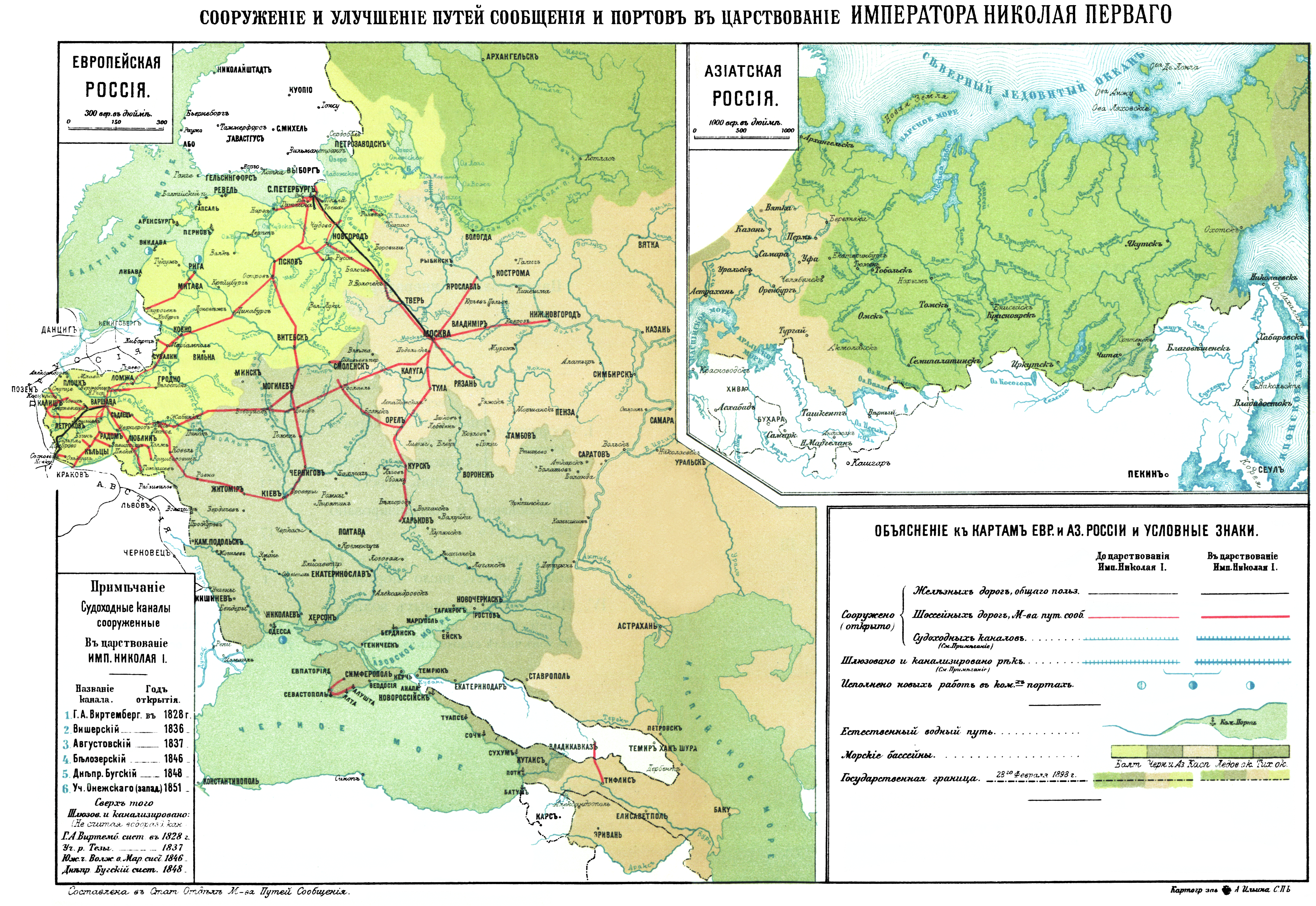 Сооружение и улучшение путей сообщения и портов в царствование Императора Николая Первого. Европейская часть России