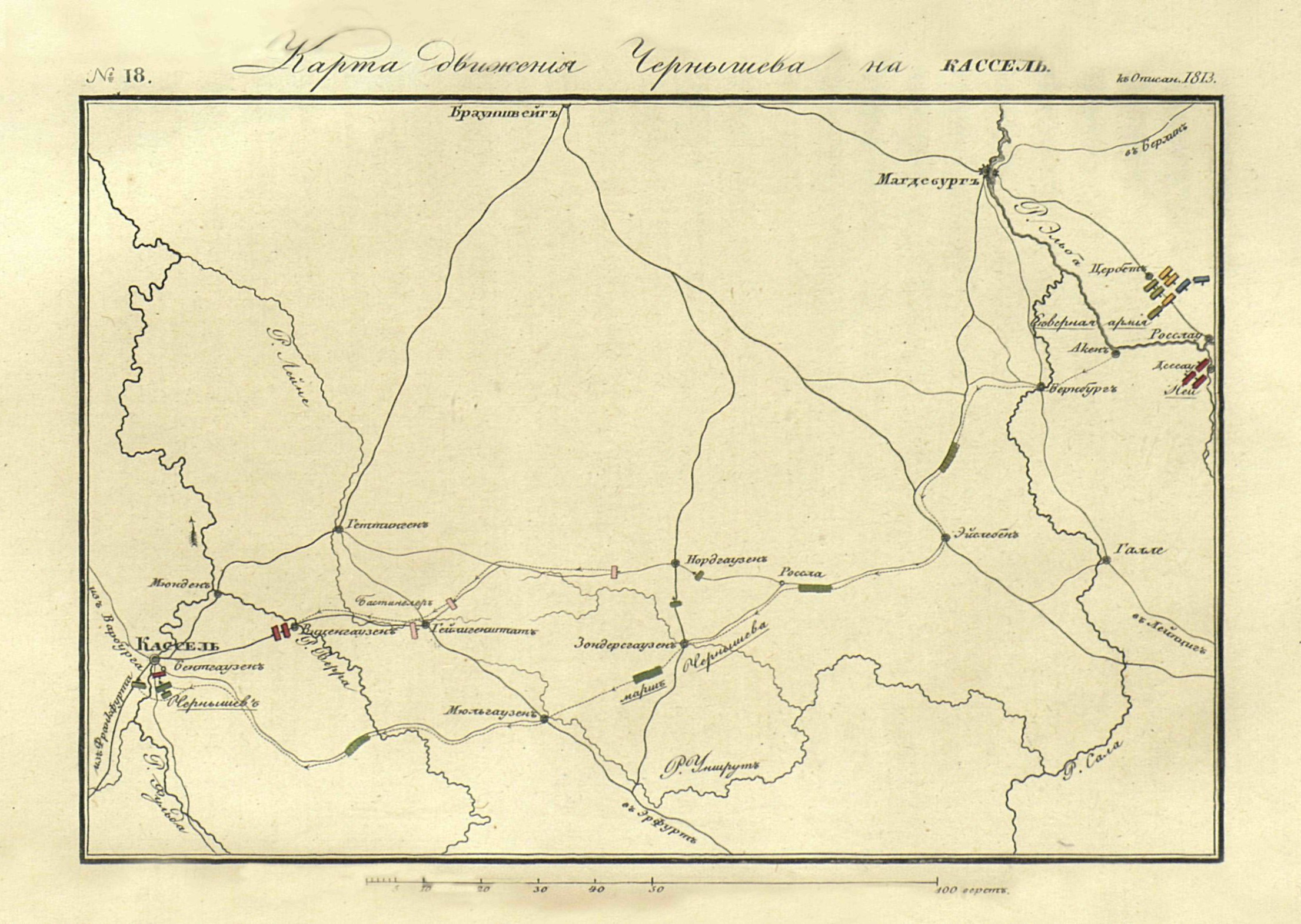 Карта расположения армий 15 сентября и для объяснения действий до сражения при Лейпциге