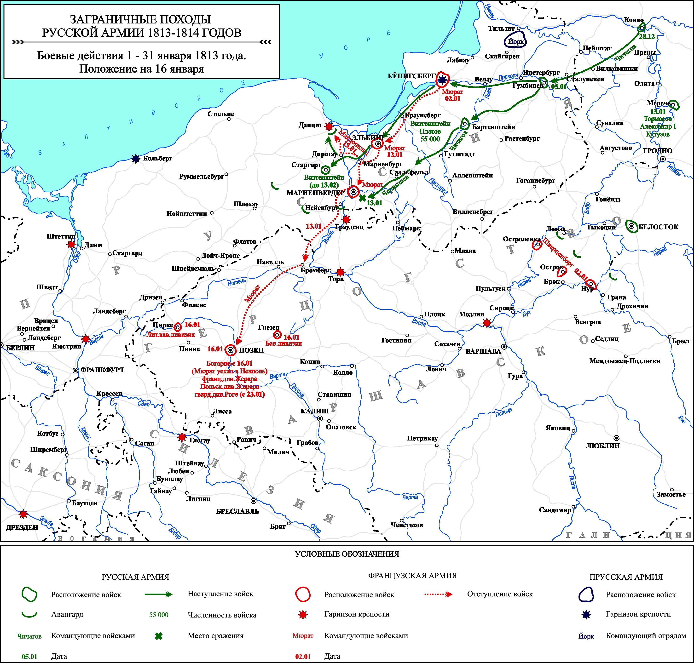 Заграничные походы Русской армии 1813-1814 гг. Положение на 16 января 1813 г.