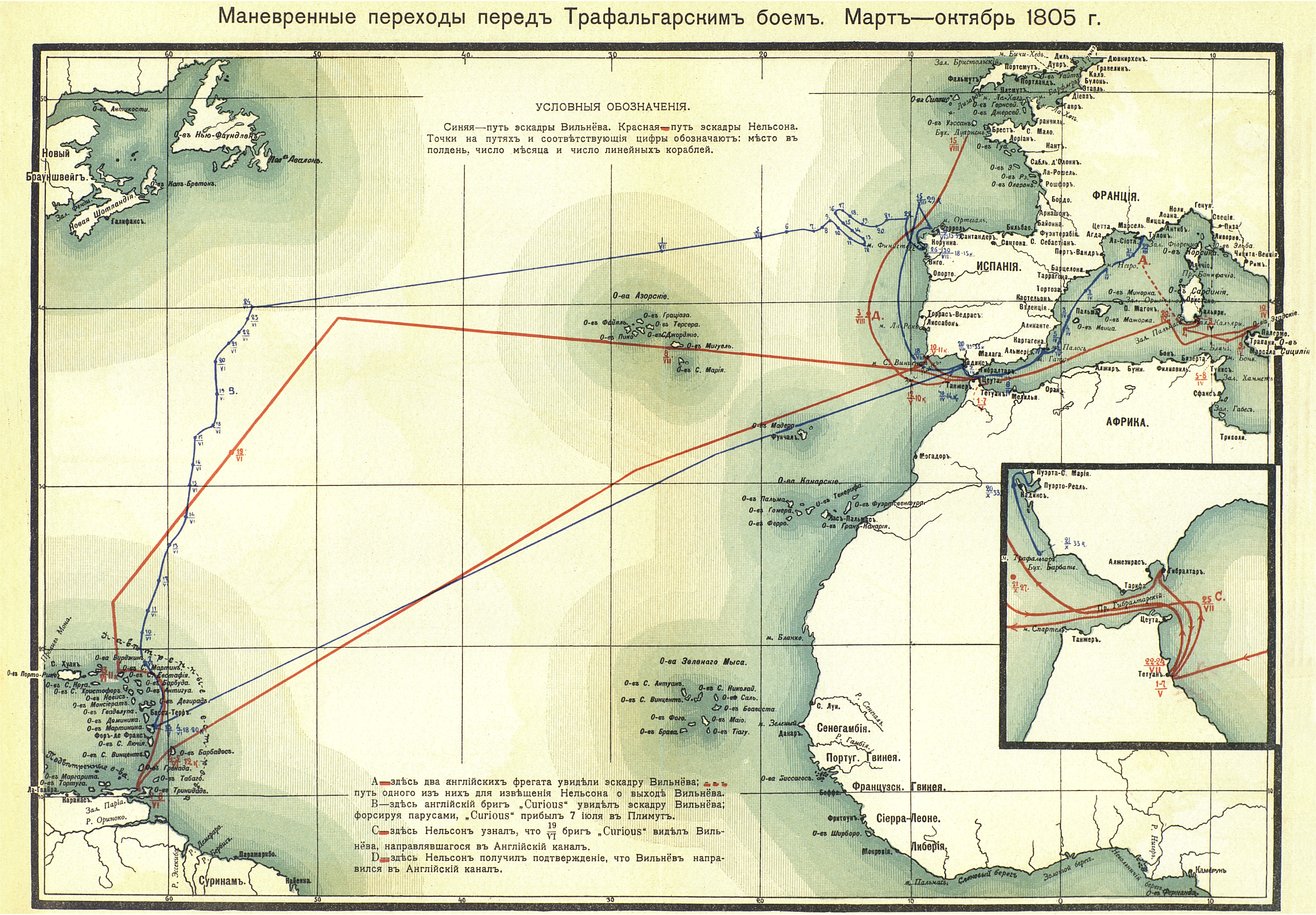 Маневренные переходы перед Трафальгарским боем. Март-октябрь 1805 г.