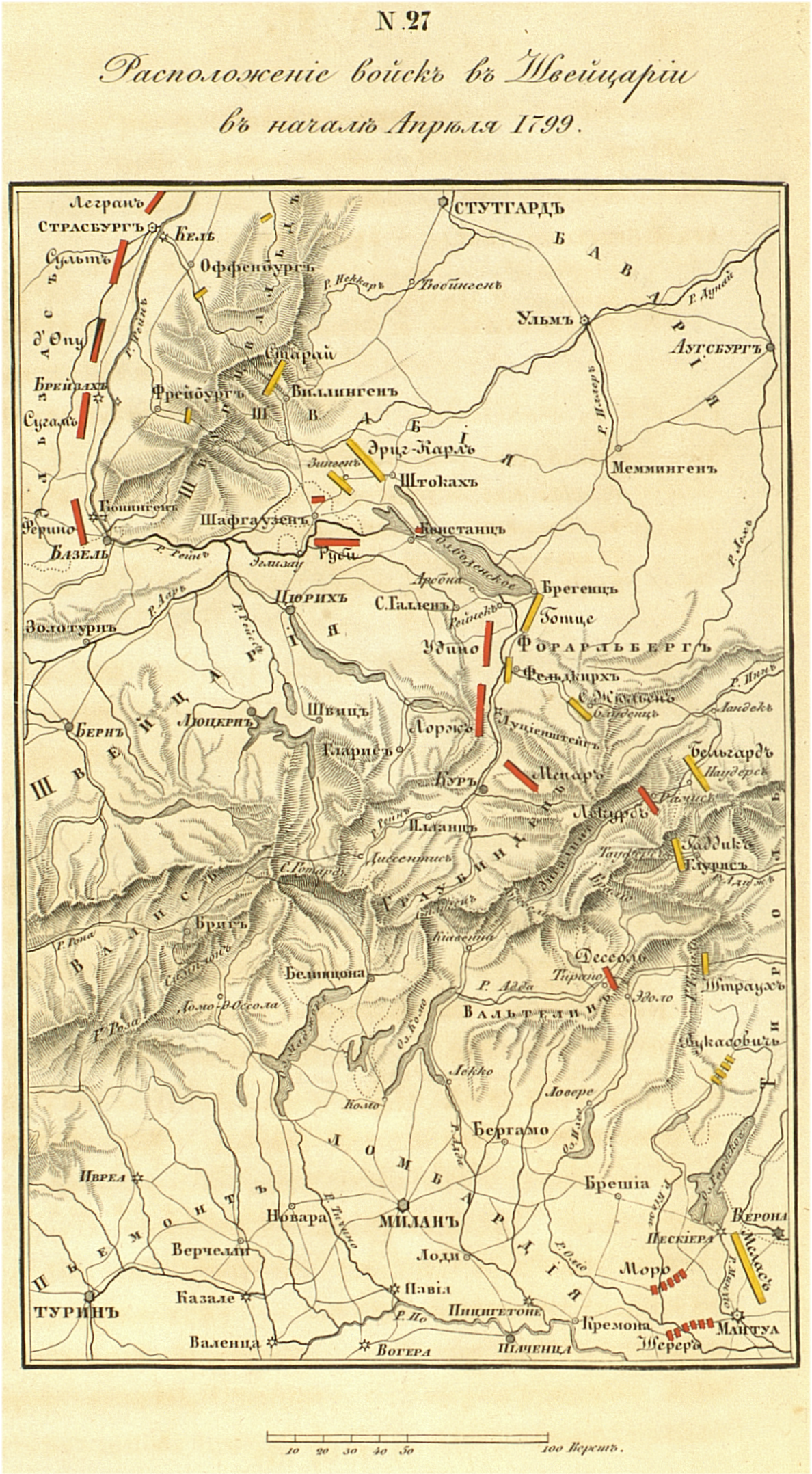 Расположение войск в Швейцарии в начале апреля 1799 г.