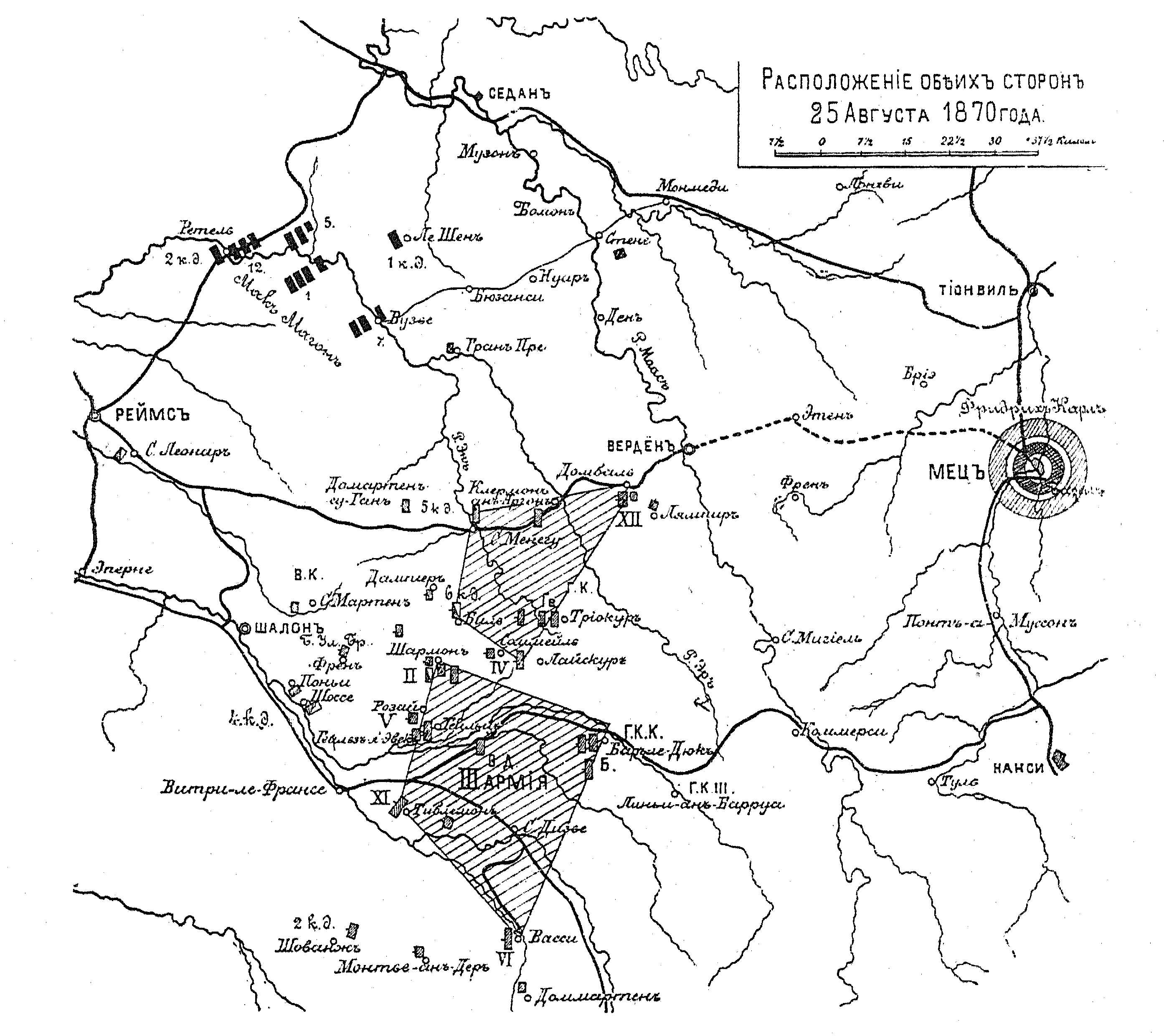 Седанский марш-маневр. Расположение обеих сторон 25 августа 1870 года