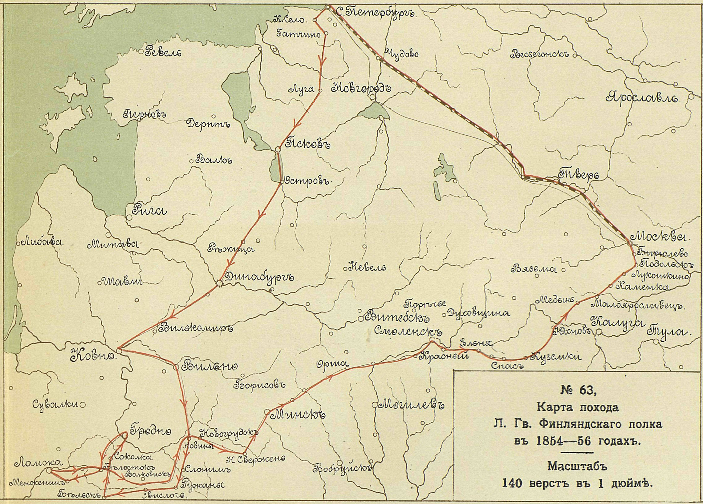 №63. Карта похода Лейб-Гвардии Финляндского полка в 1854-56 годах
