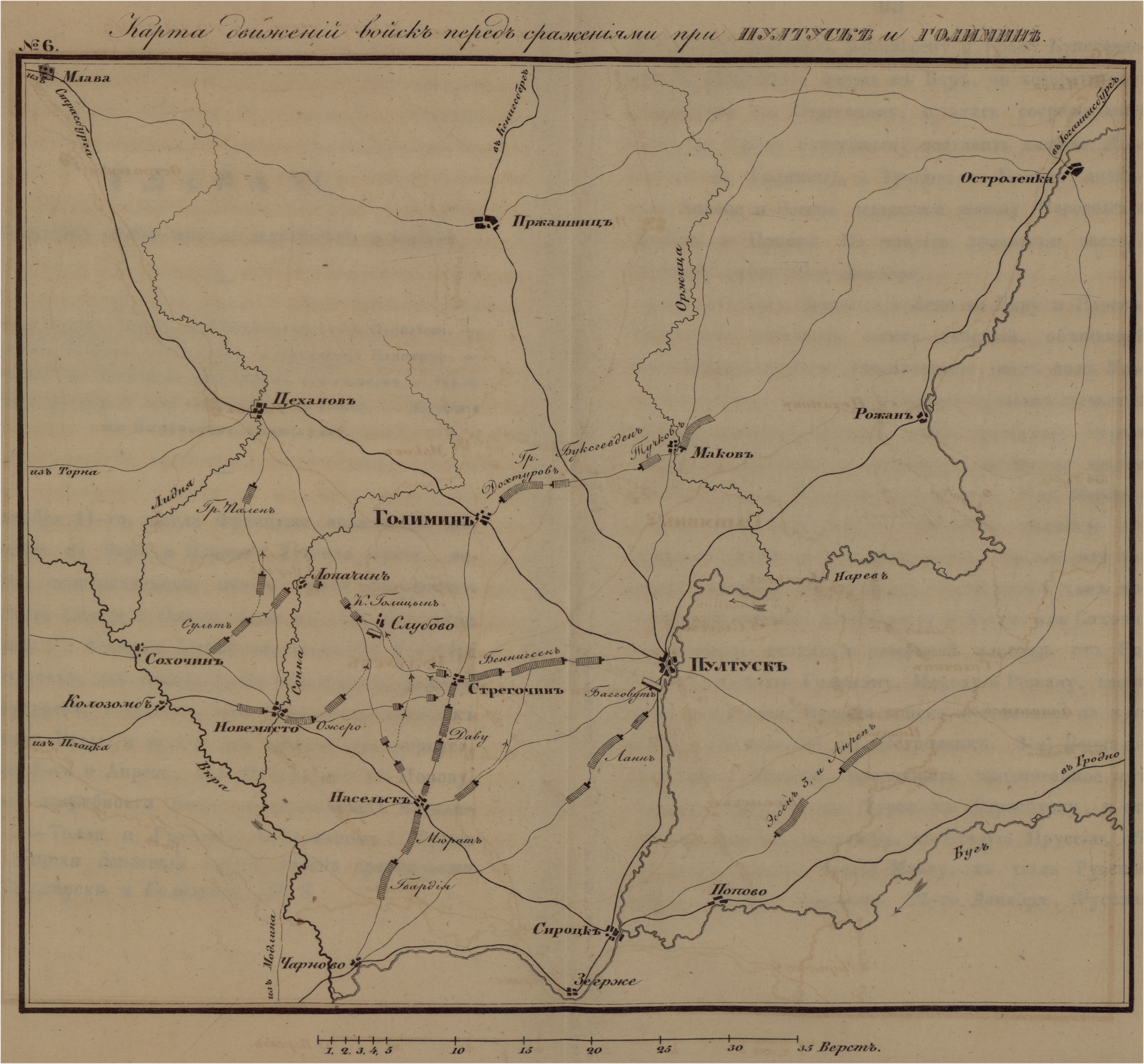 Карта движений войск перед сражениями при Пултуске и Голимине.