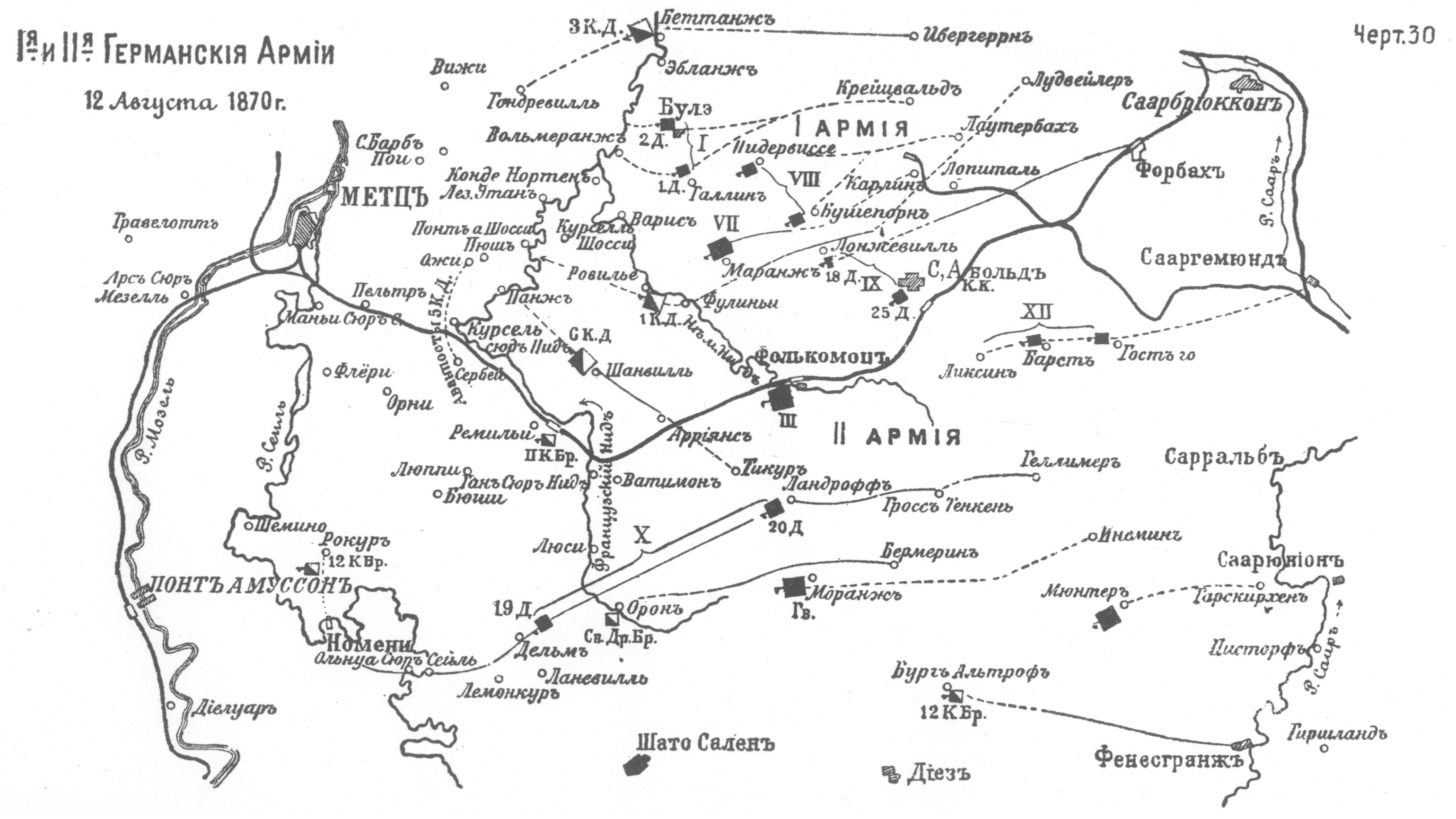 I-я и II-я Германские армии 12 августа 1870 года