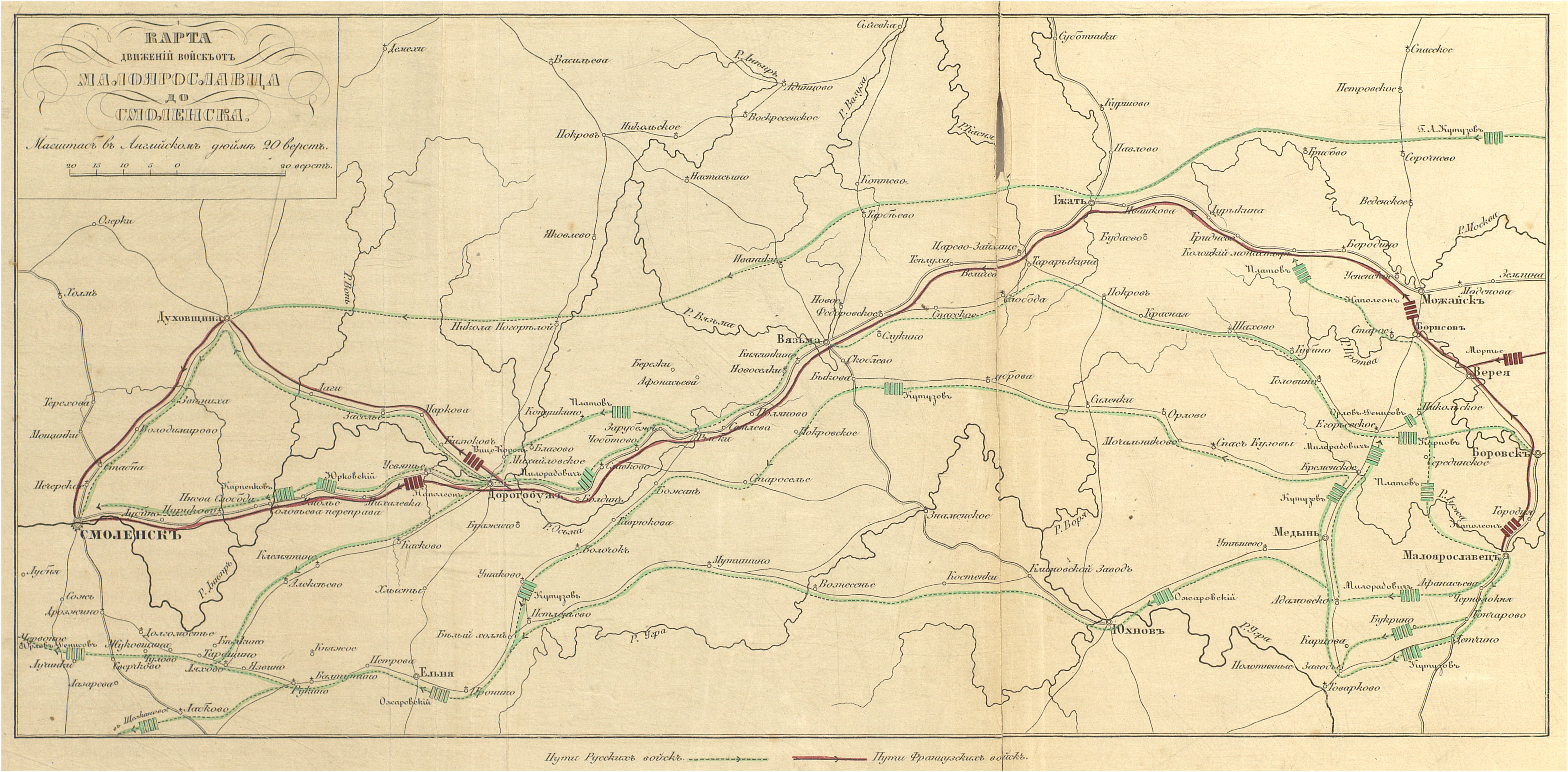 Карта движений войск от Малоярославца до Смоленска.