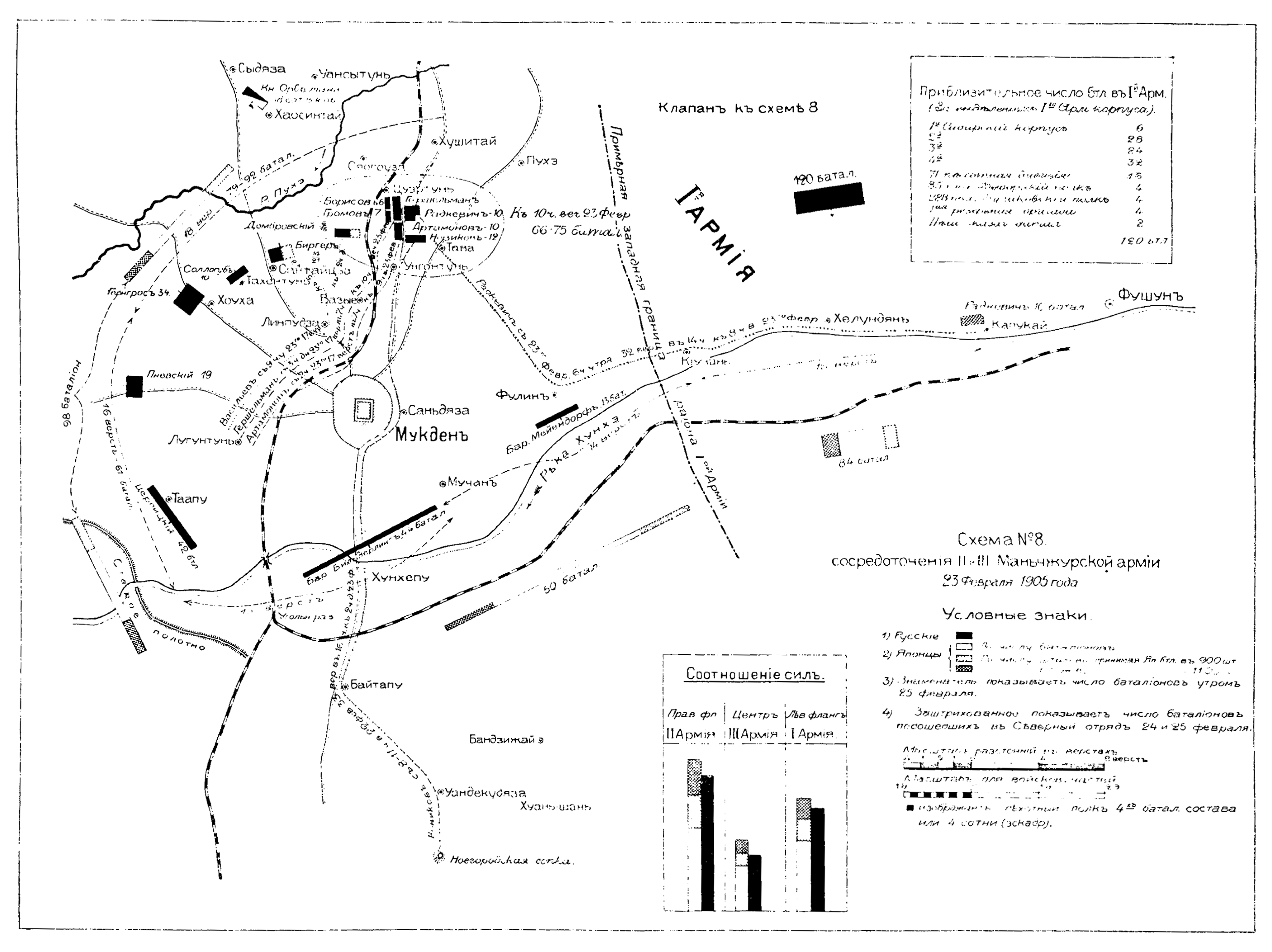 Схема сосредоточения 2 и 3 Маньчжурской армии 23 февраля 1905 года