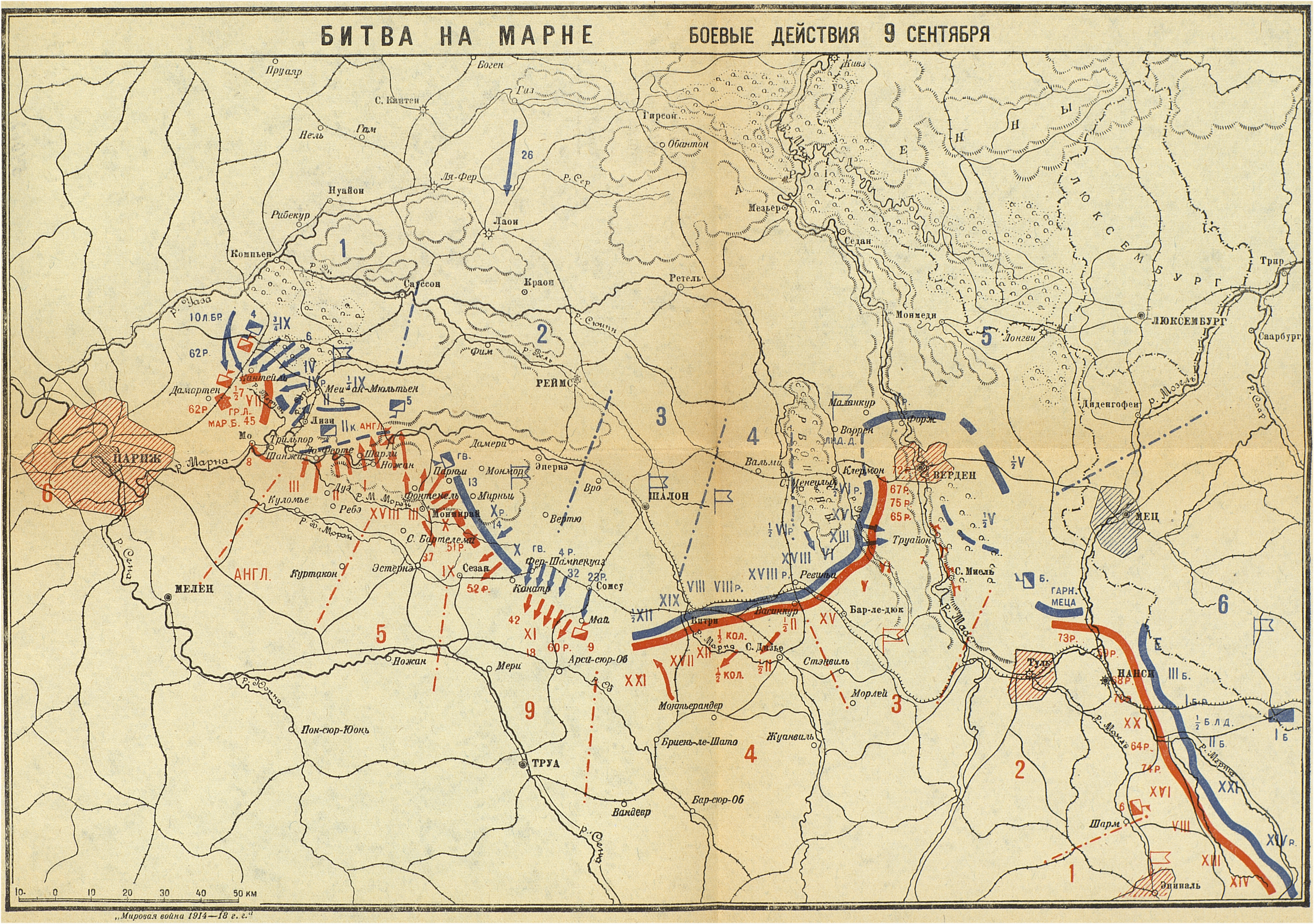 Кампания 1914 года. Французский театр. Битва на Марне. Боевые действия 9 сентября