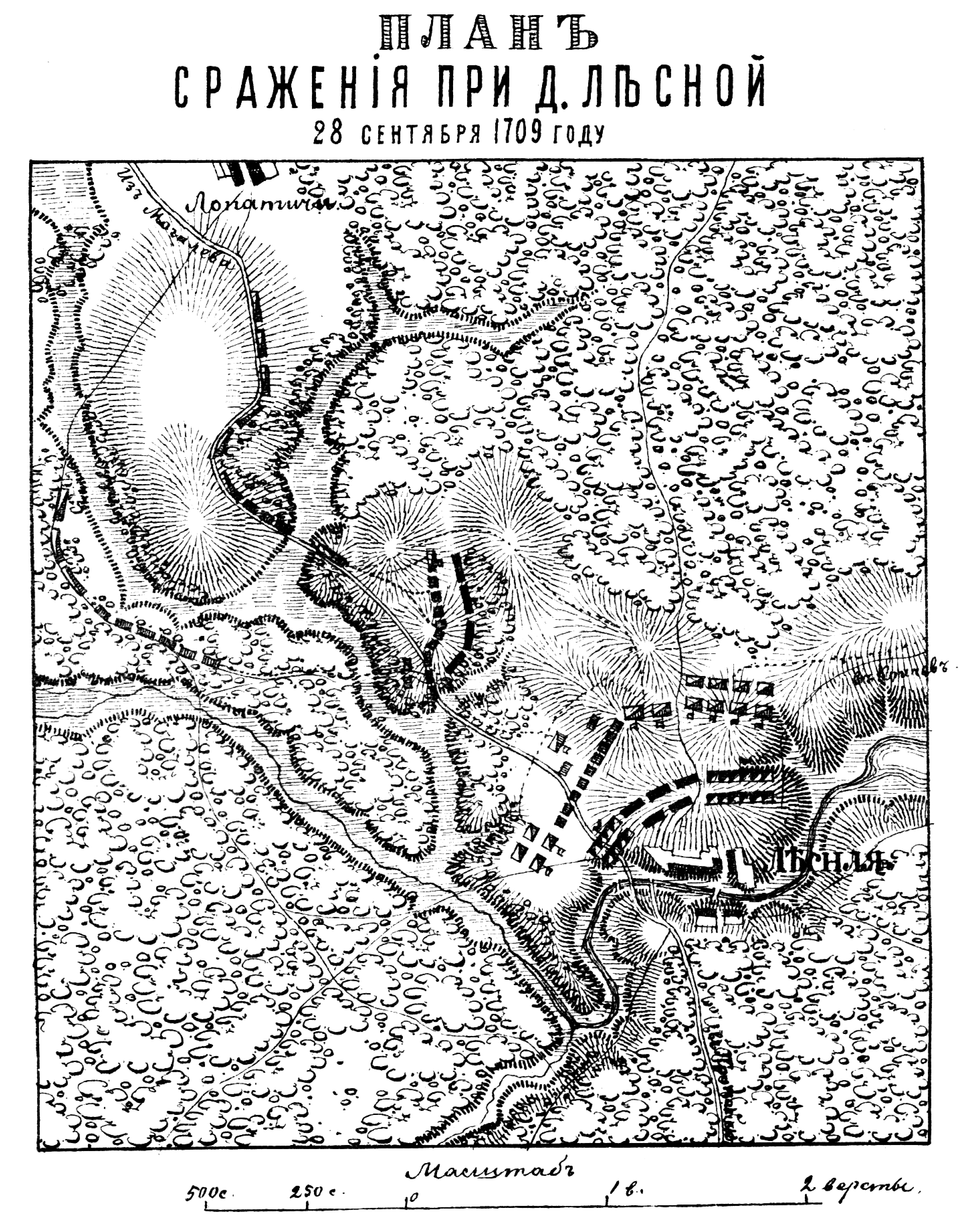 Карта-схема битвы при Фрауштадте, 13 (3) февраля 1706 года