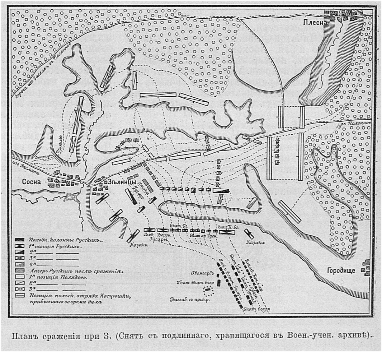 Карта-схема битвы при Фрауштадте, 13 (3) февраля 1706 года