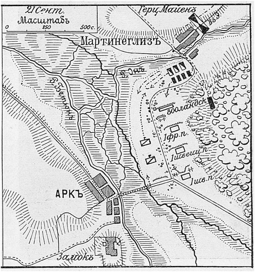 Карта-схема битвы при Фрауштадте, 13 (3) февраля 1706 года
