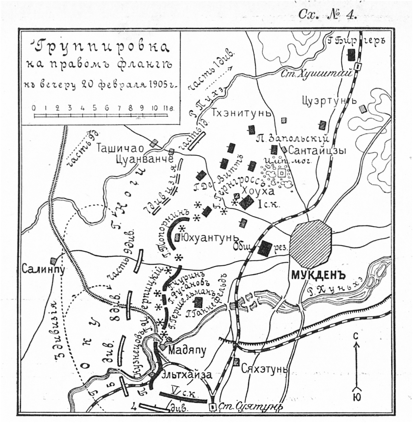 Мукден. Группировка на правом фланге к вечеру 20 февраля 1905 года