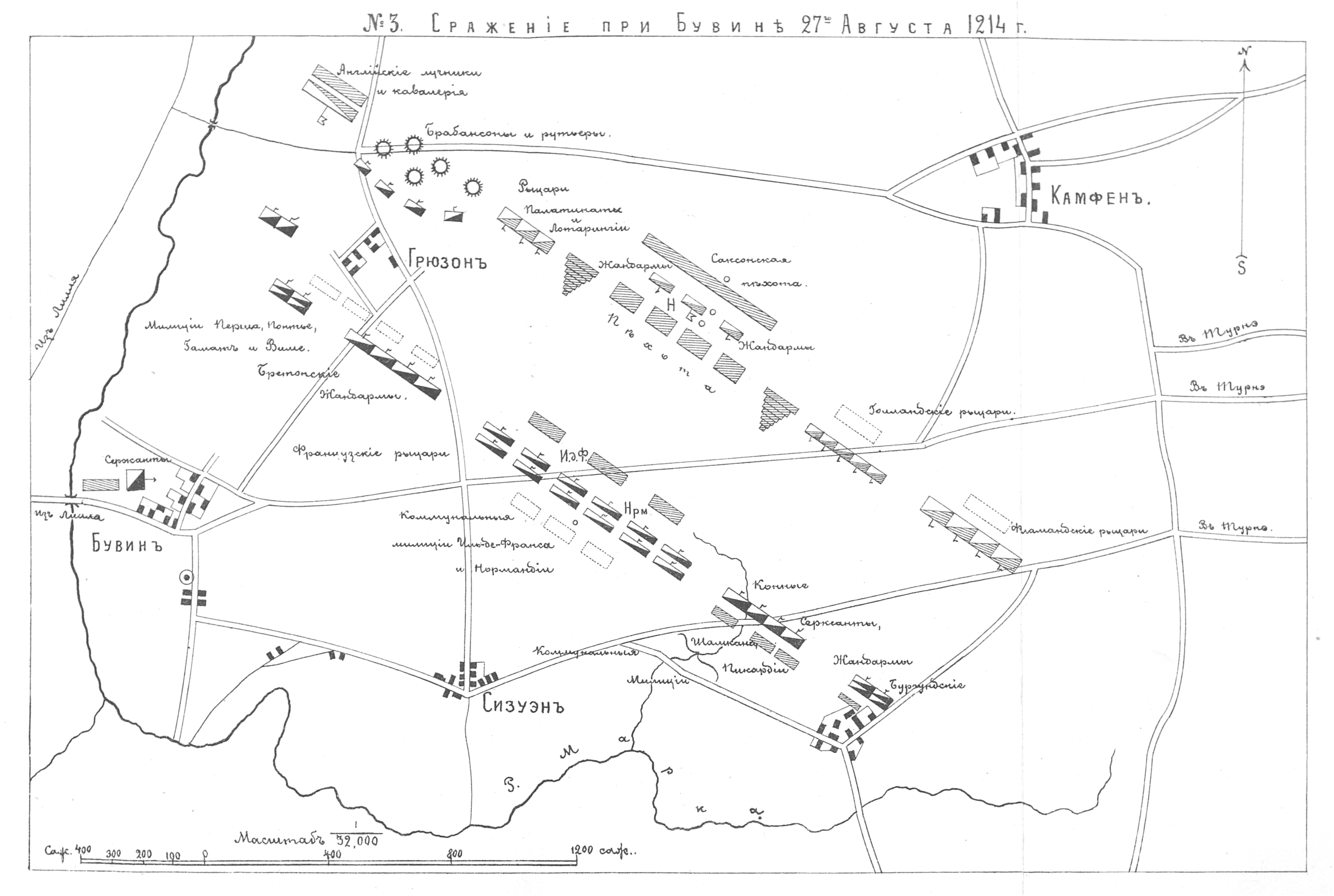 В авторском атласе одного из заслуженных профессоров Николаевской Академии Генерального Штаба полковника П.А. Гейсмана приведен ряд схем построения войск в известных сражениях эпохи крестовых походов и Столетней войны XIII-XV вв. для иллюстрации краткого курса развития военного искусства в раннее средневековье.
