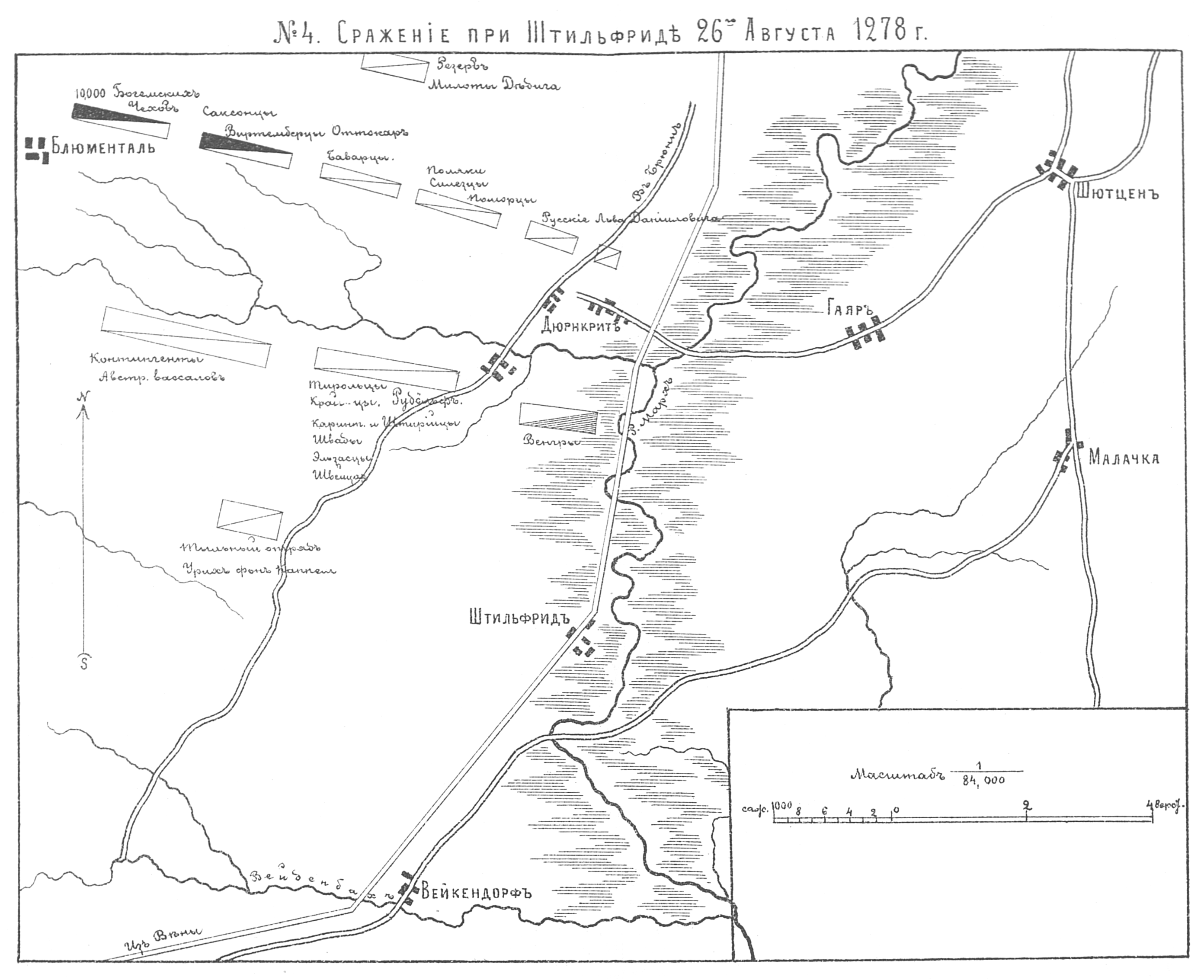 Карта-схема битвы при Фрауштадте, 13 (3) февраля 1706 года