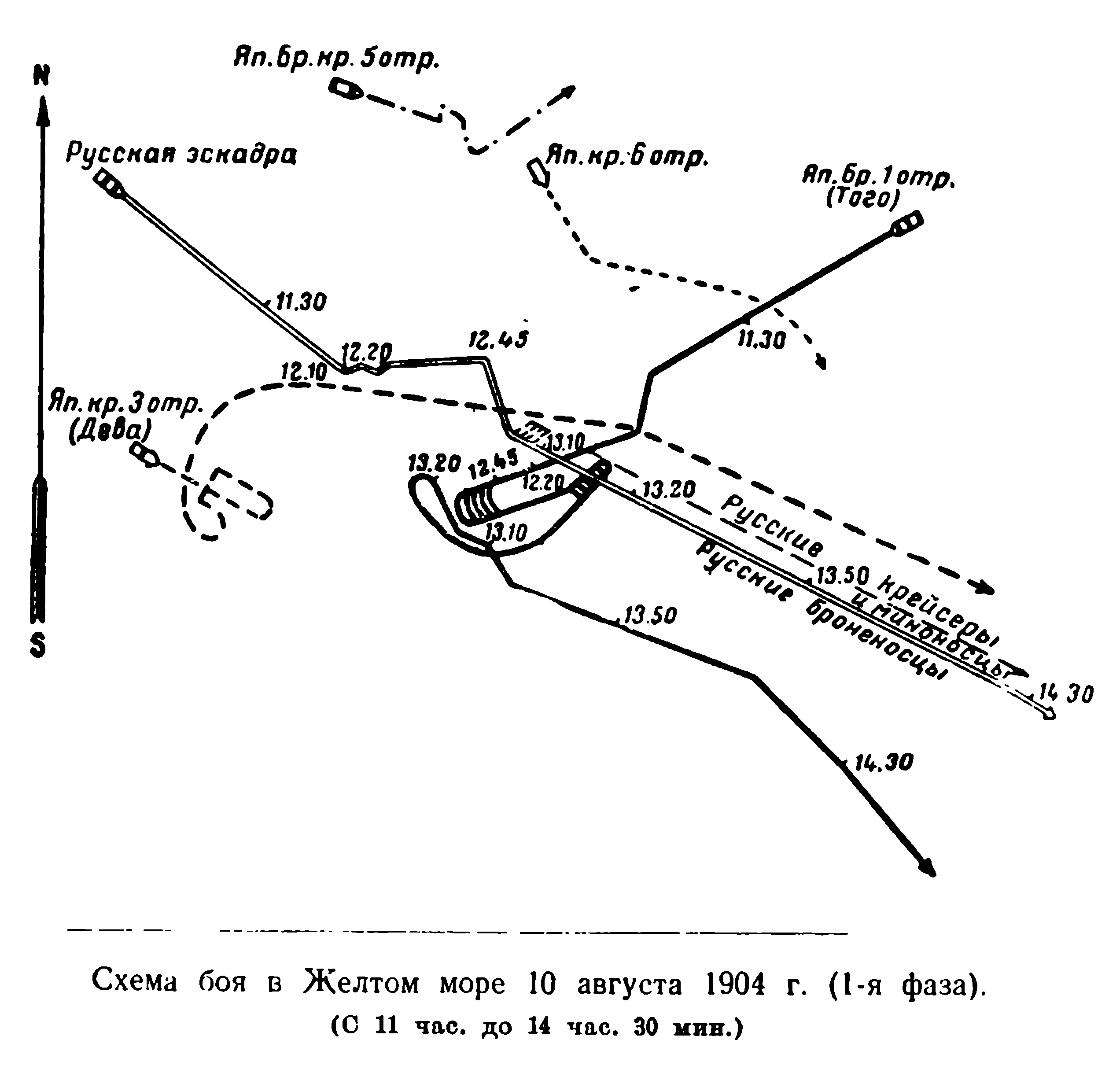 Бой в Желтом море 10 августа 1904 года (1 фаза). С 11 часов до 14 часов 30 минут