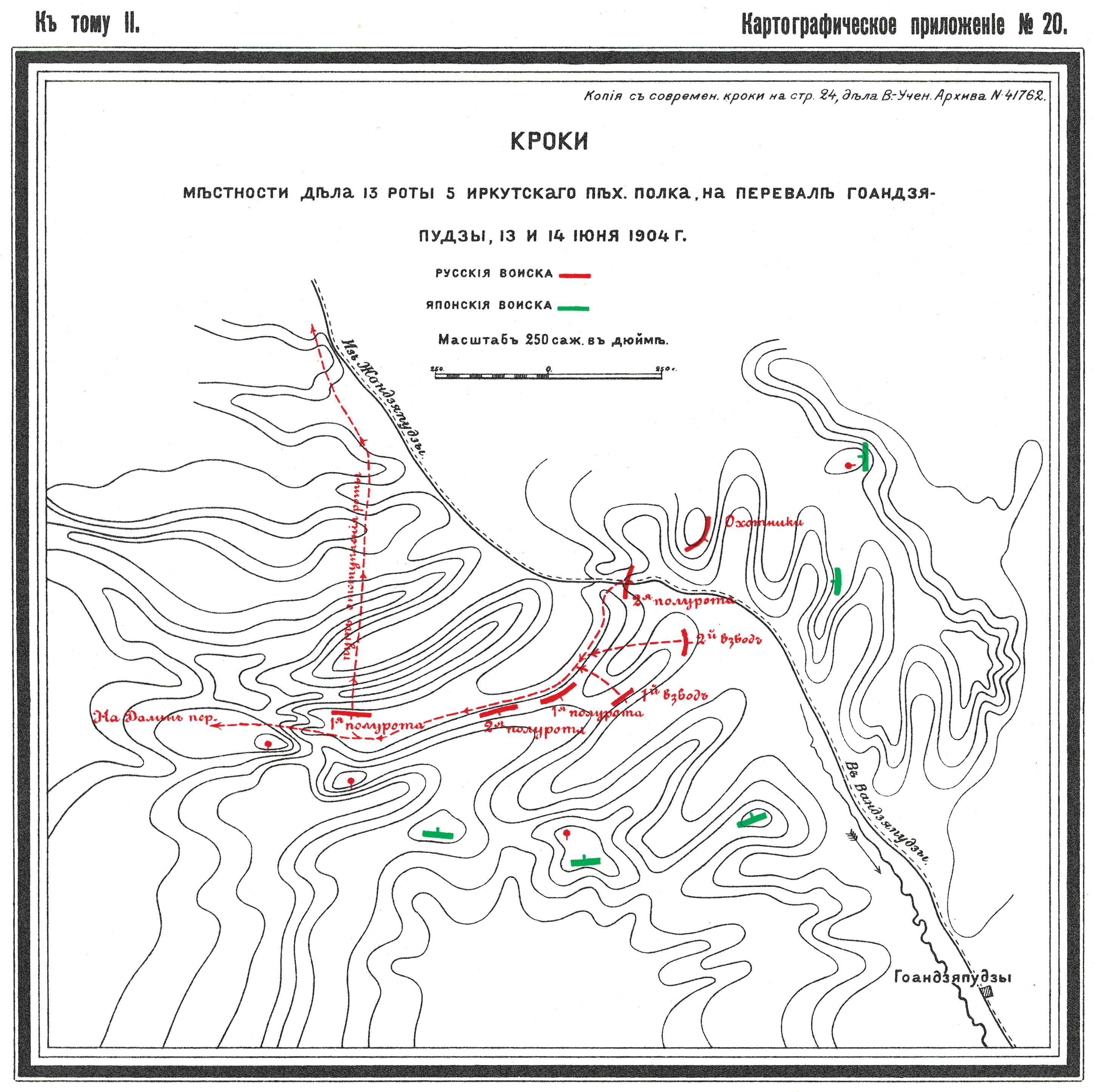 Кроки местности дела 13 роты 5 Иркутского пехотного полка на перевале Гоандзяпудзы 13 и 14 июня 1904 г.