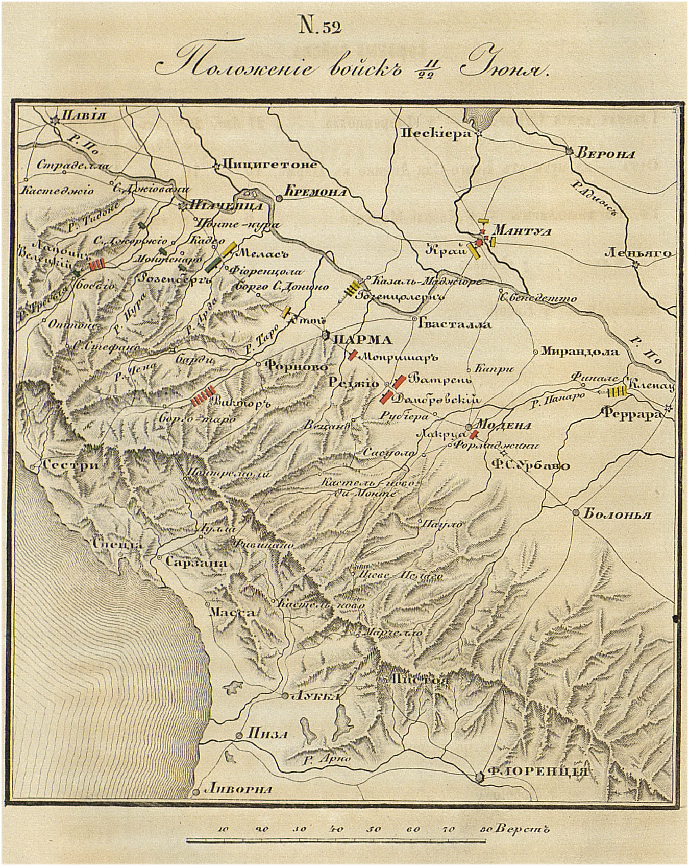 Положение главных армий после сражения на Треббии 11 июня 1799г.