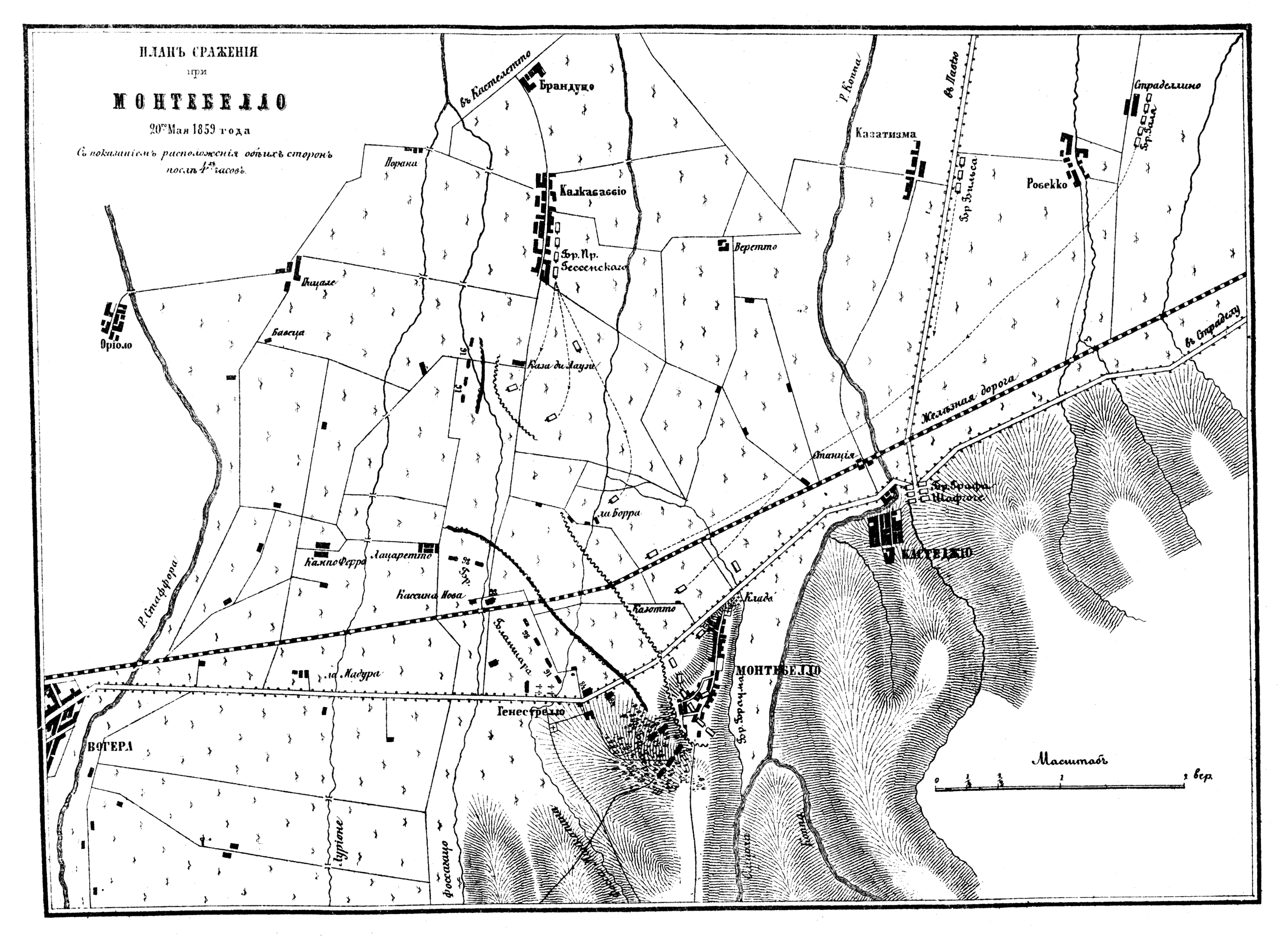 Сражение при Монтебелло 20 мая 1859 года с показанием расположения обеих сторон после 4 часов