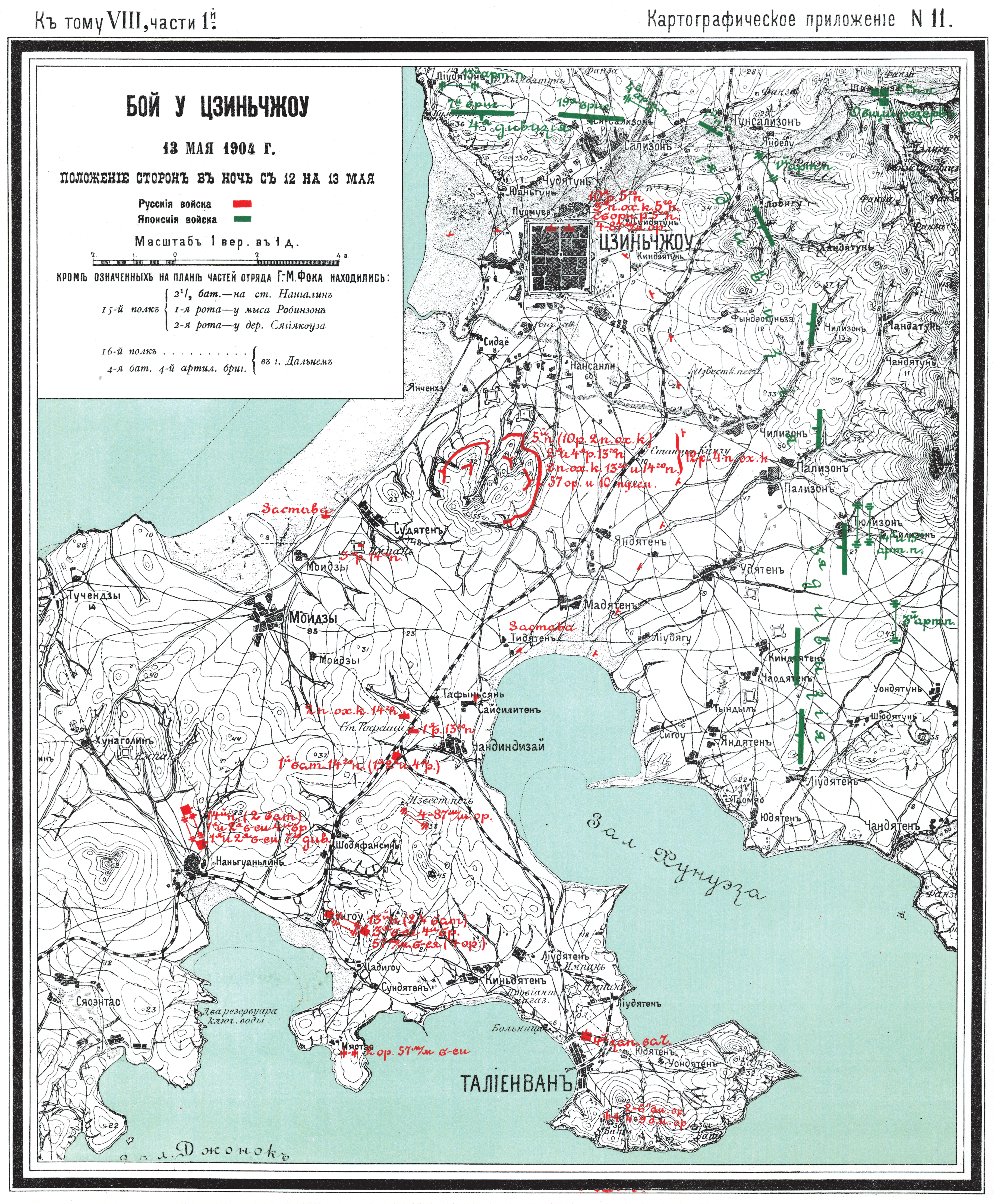 Бой у Цзиньчжоу 13 мая 1904 года. Положение сторон в ночь с 12 на 13 мая