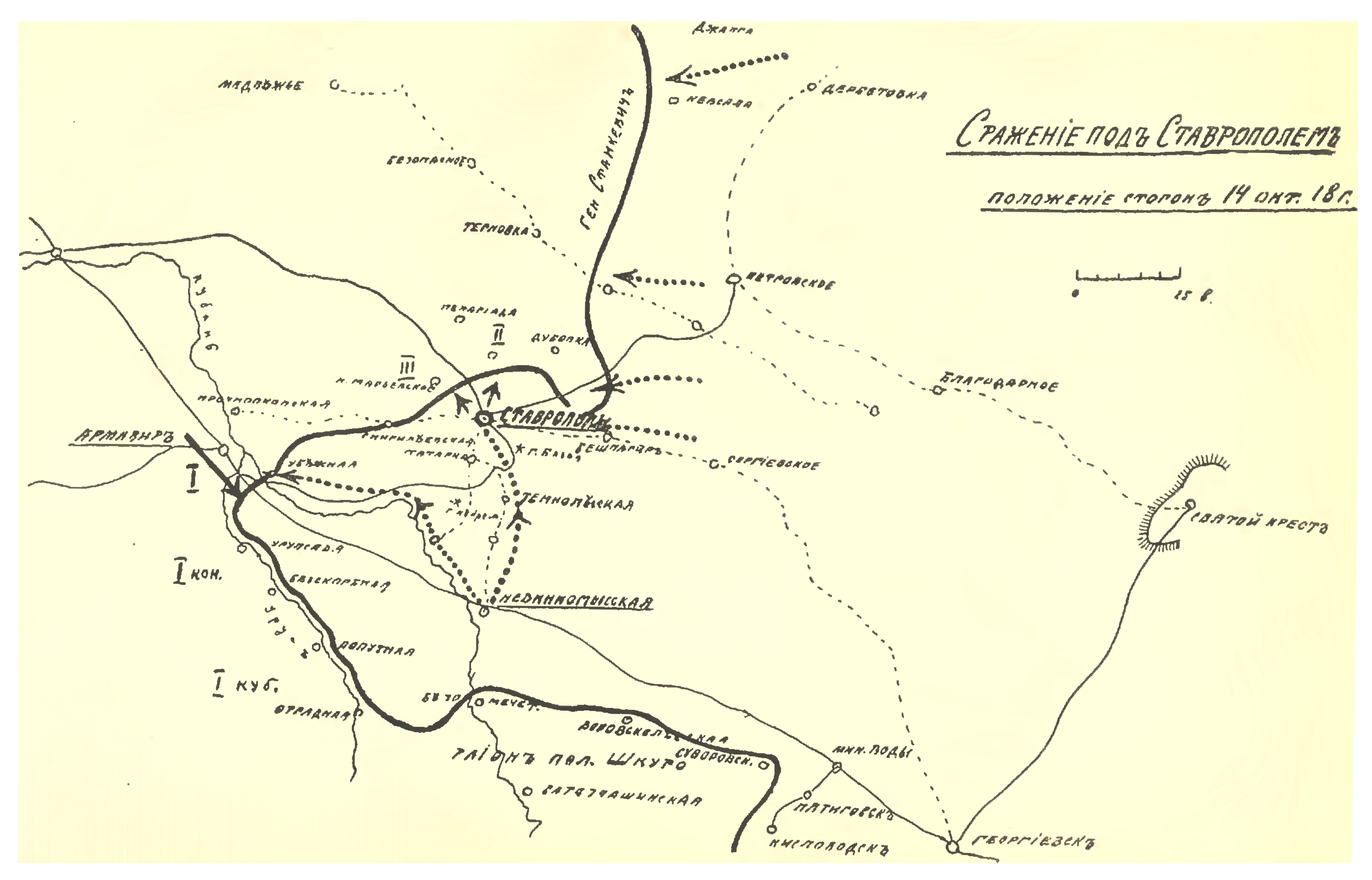 Сражение под Ставрополем. Положение сторон 14 октября 1918 года