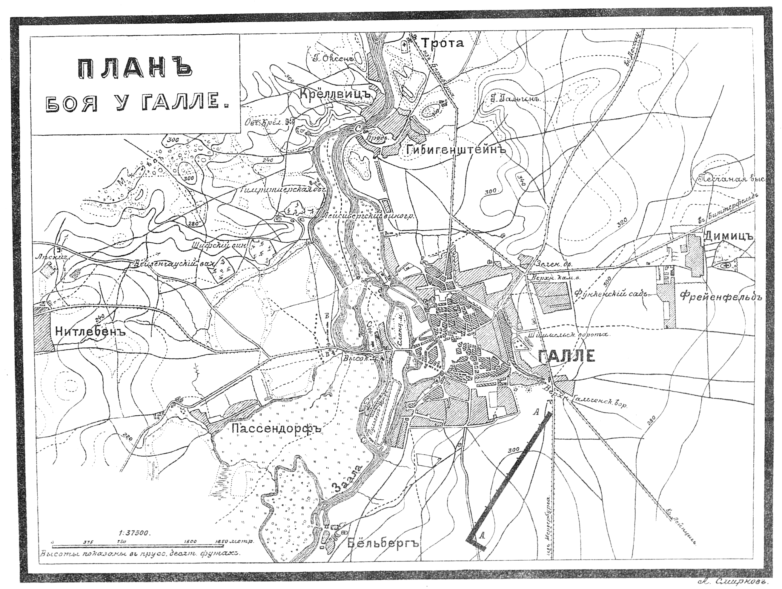 Карта-схема битвы при Фрауштадте, 13 (3) февраля 1706 года