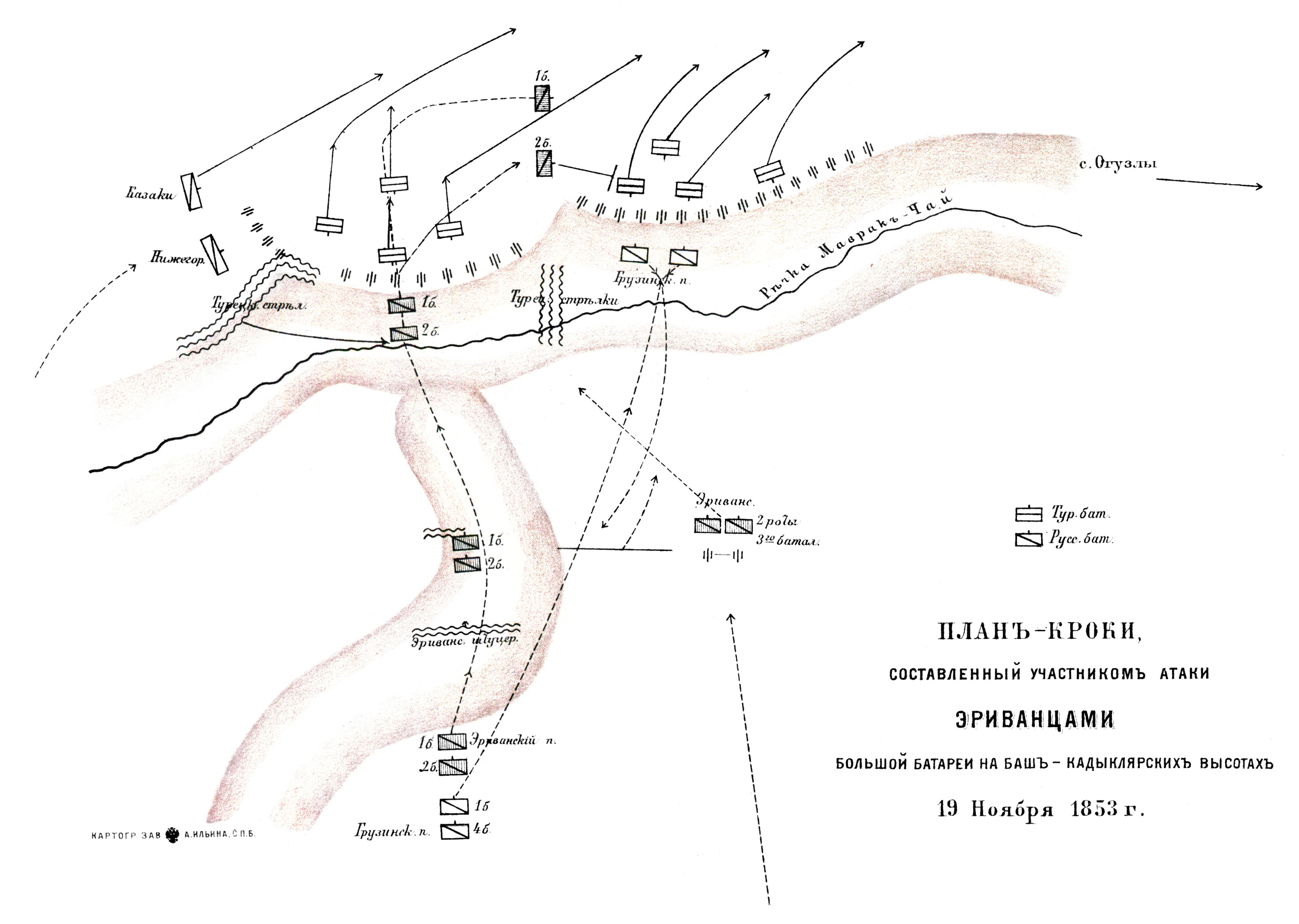 План-кроки, составленный участником атаки эриванцами большой батареи на Баш-Кадыклярских высотах 19 ноября 1853 года