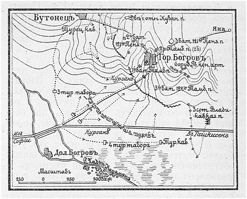 Расположение войск в сражении 19 декабря 1877 года у селения Горный Богров