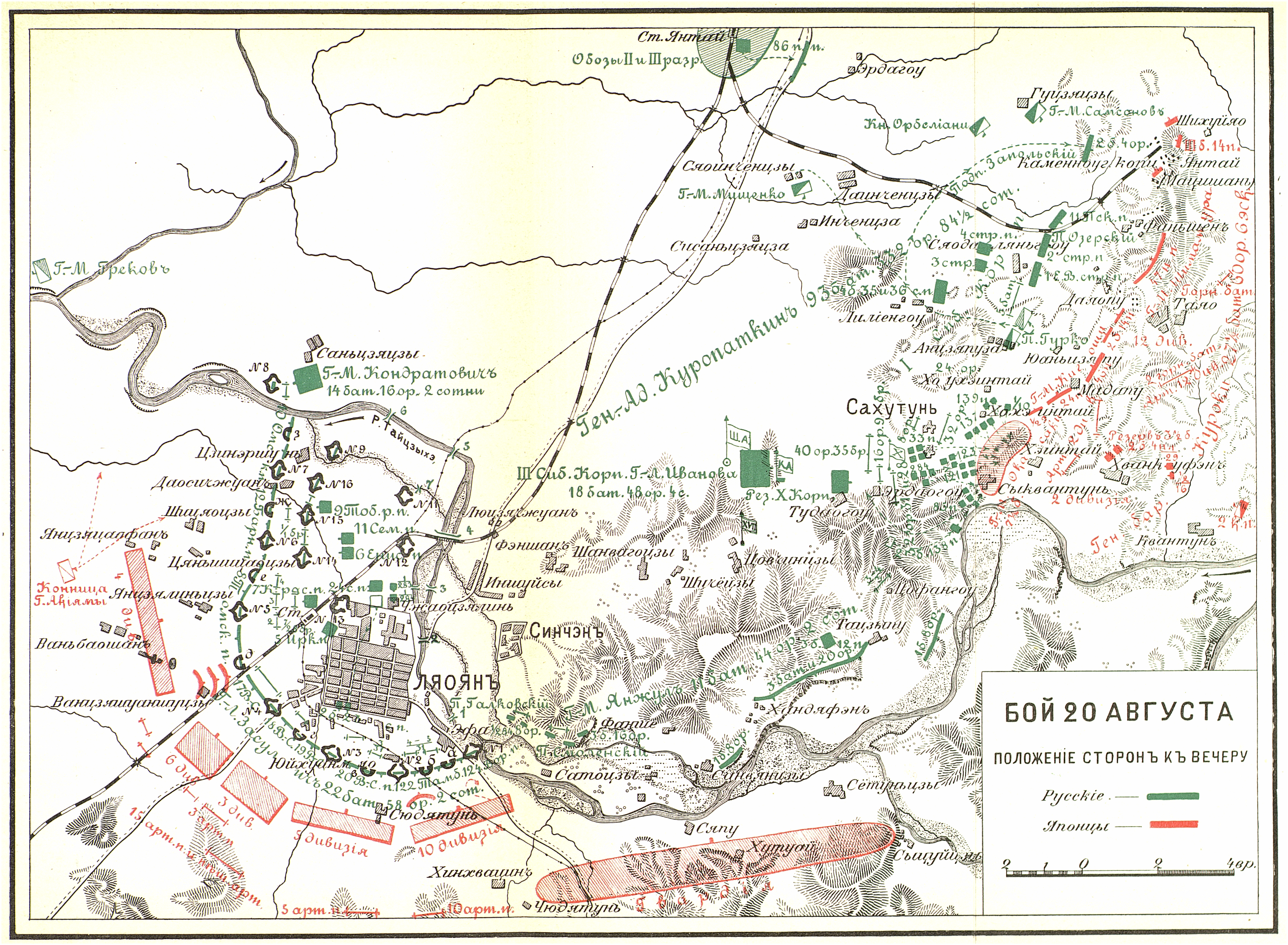 Бой 20 августа 1904 г. Положение сторон к вечеру.