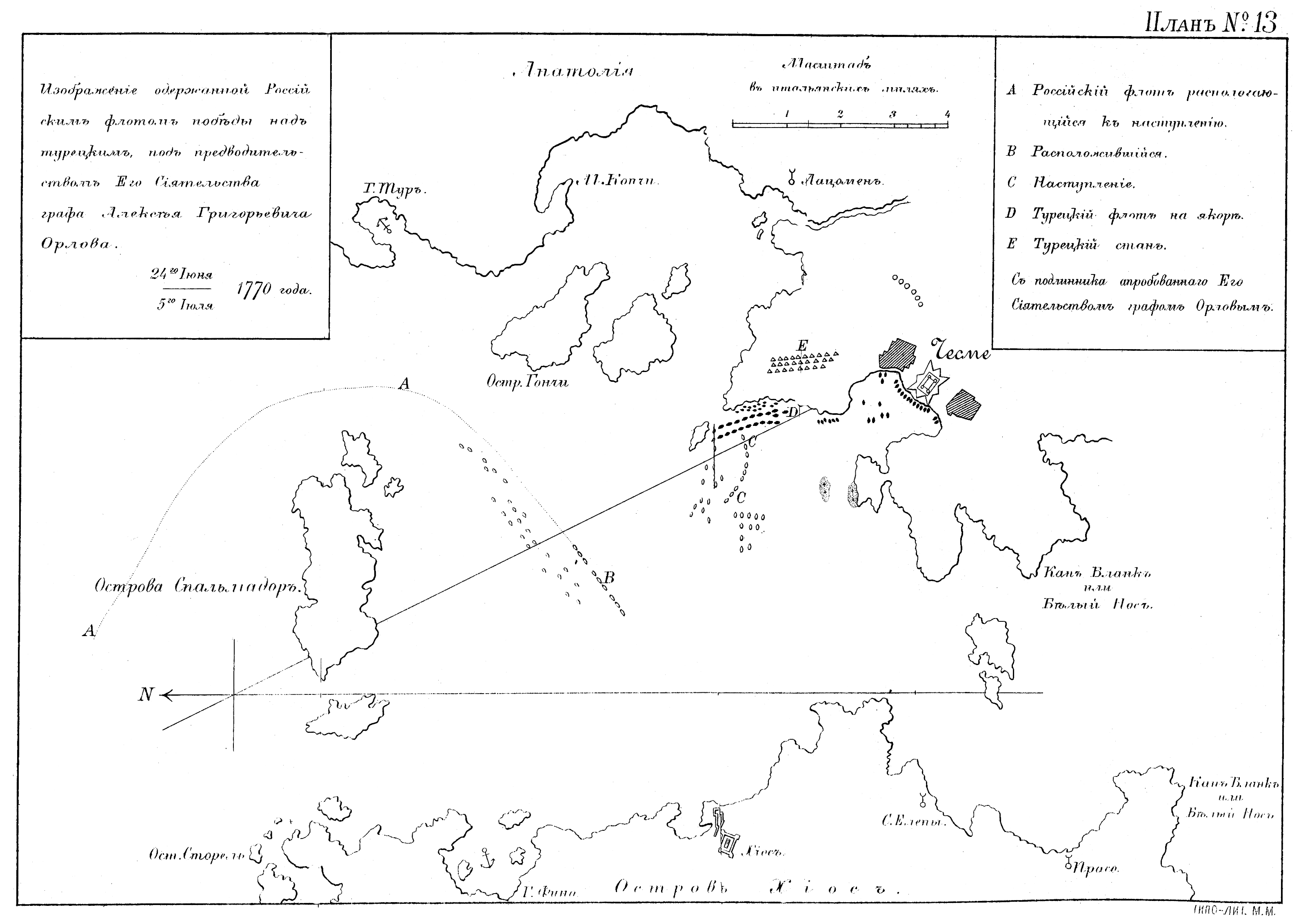 Изображение одержанной Российским флотом победы над турецким, под предводительством Его Сиятельства графа Алексея Григорьевича Орлова 24 июня/5 июля 1770 года