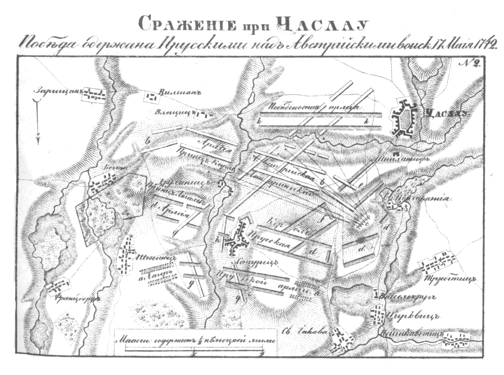 Сражение при Часлау. Победа одержана Прусскими над Австрийскими войсками 17 мая 1742 года