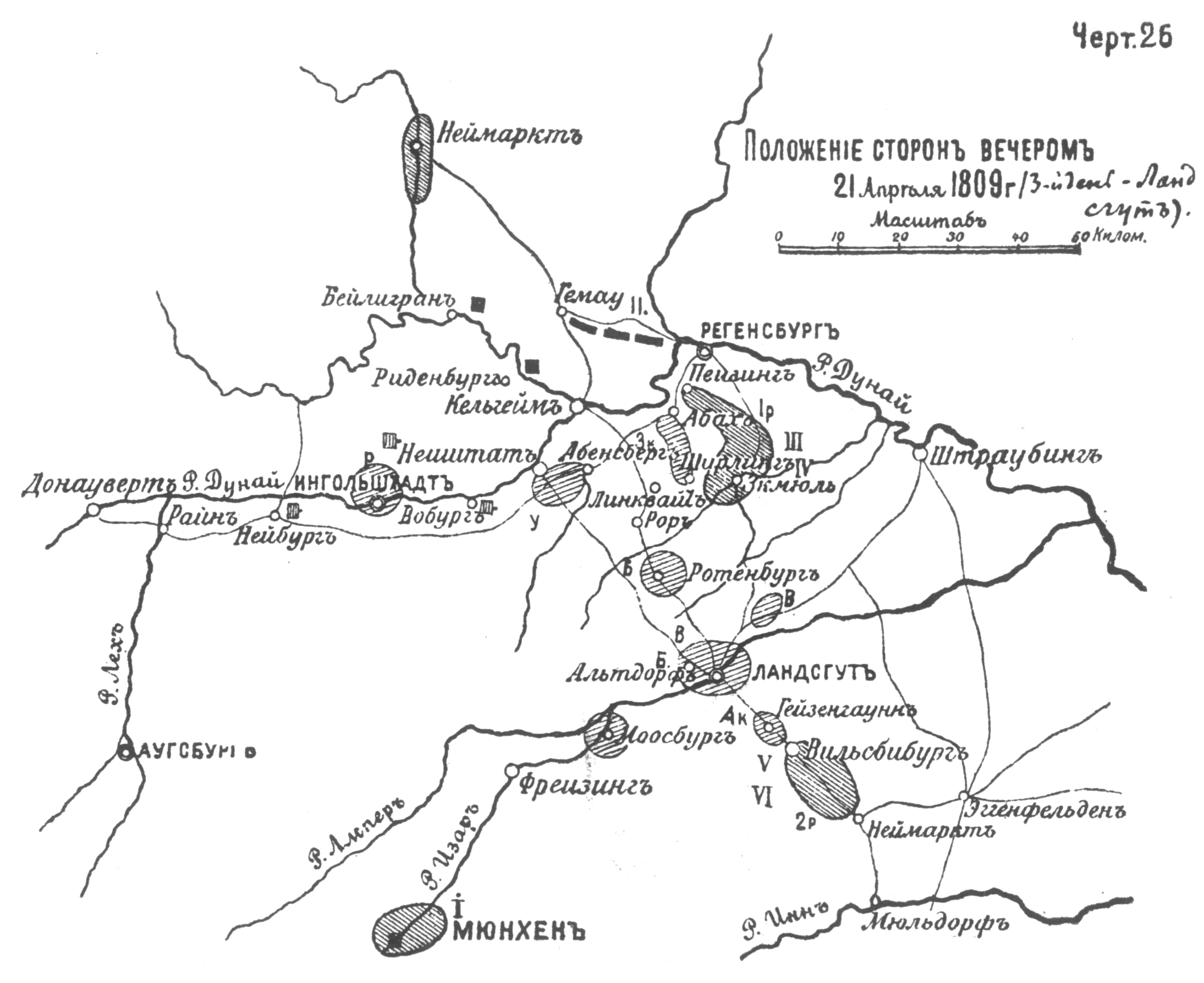 Положение сторон вечером 21 апреля 1809 года (Третий день - Ландсгут)