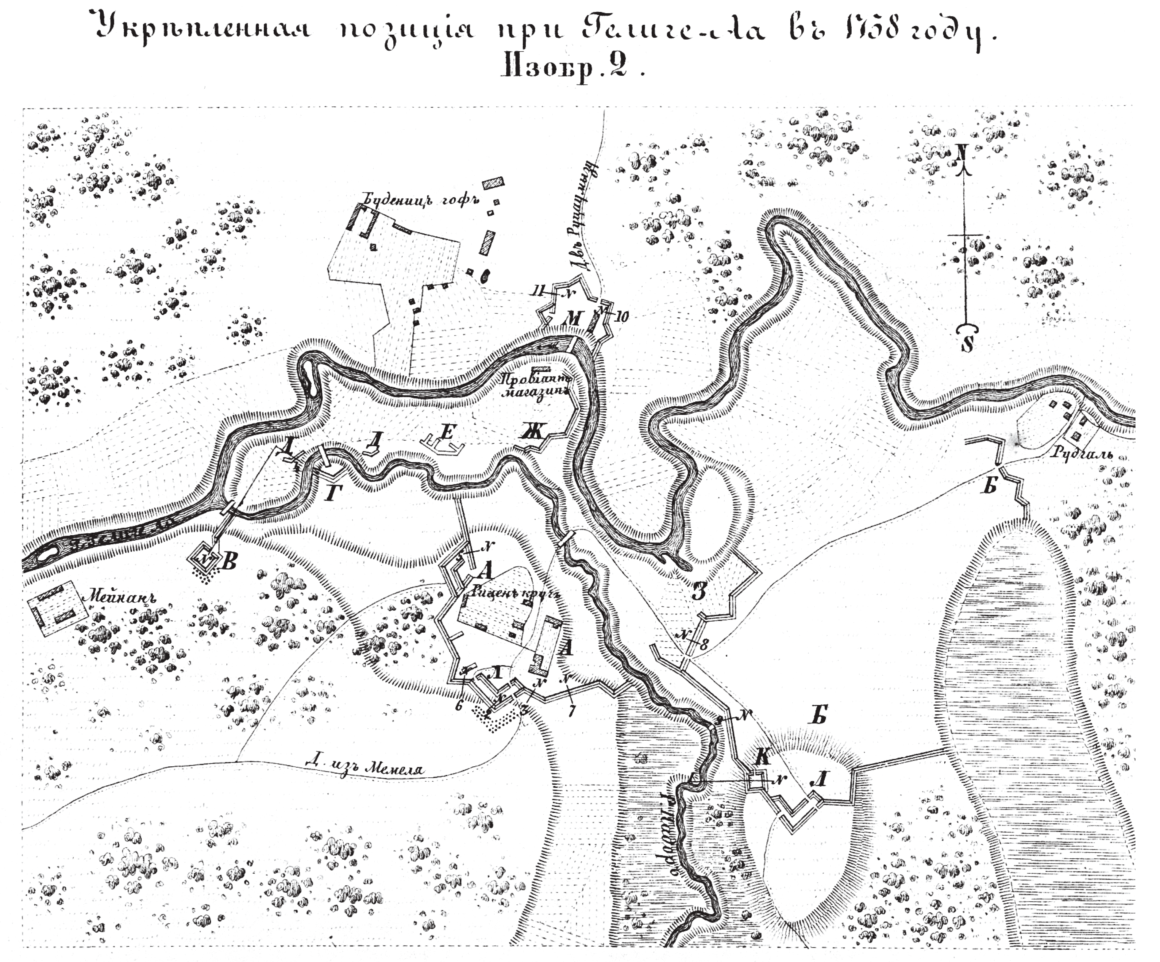 Полевые и временные укрепления. Изобр.2. Укрепленная позиция при Гелике-Аа в 1738 году