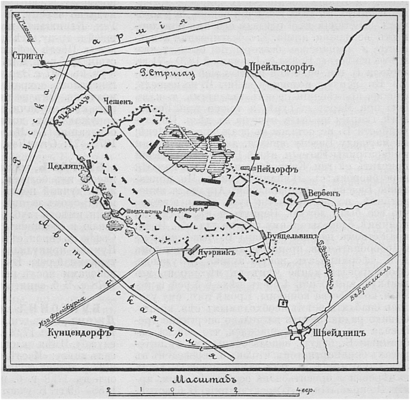 Карта-схема битвы при Фрауштадте, 13 (3) февраля 1706 года