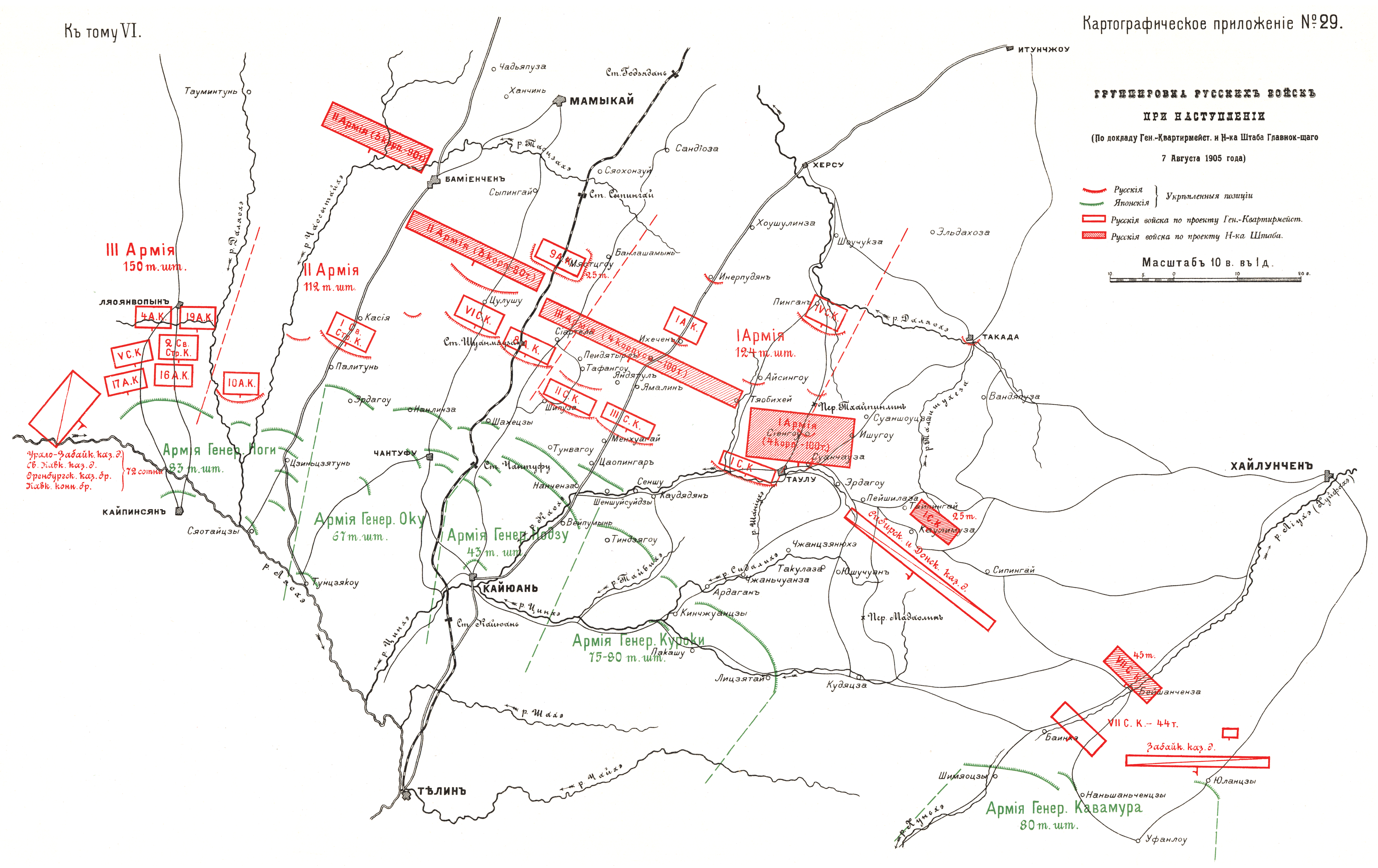Группировка русских войск при наступлении (по докладу Генерал-Квартирмейстера и Начальника Штаба Главнокомандующего 7 августа 1905 года)
