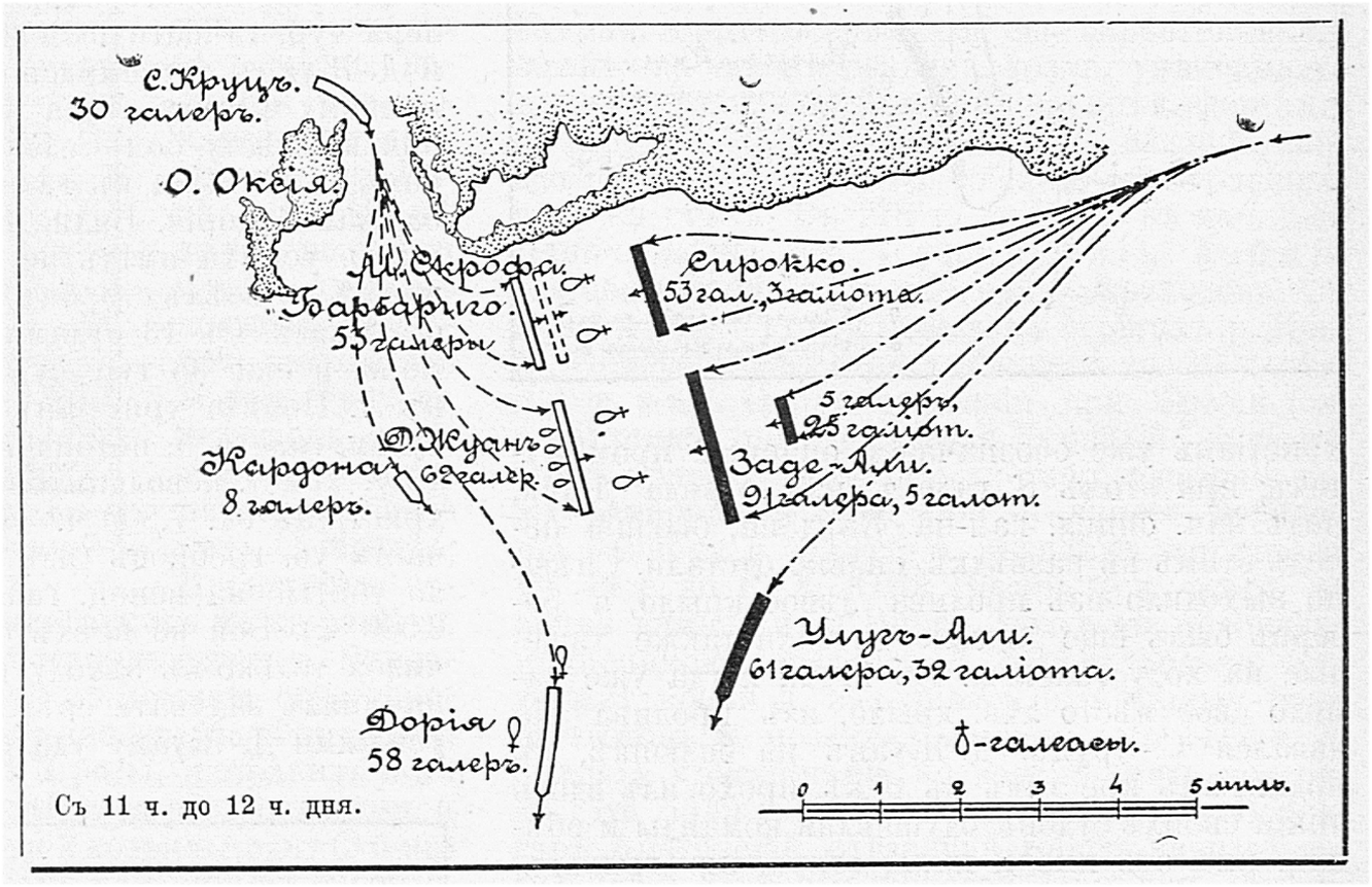 Сражение 7 октября 1571 года у Лепанто между соединенными христианскими и мусульманскими флотами с 11 до 12 ч дня