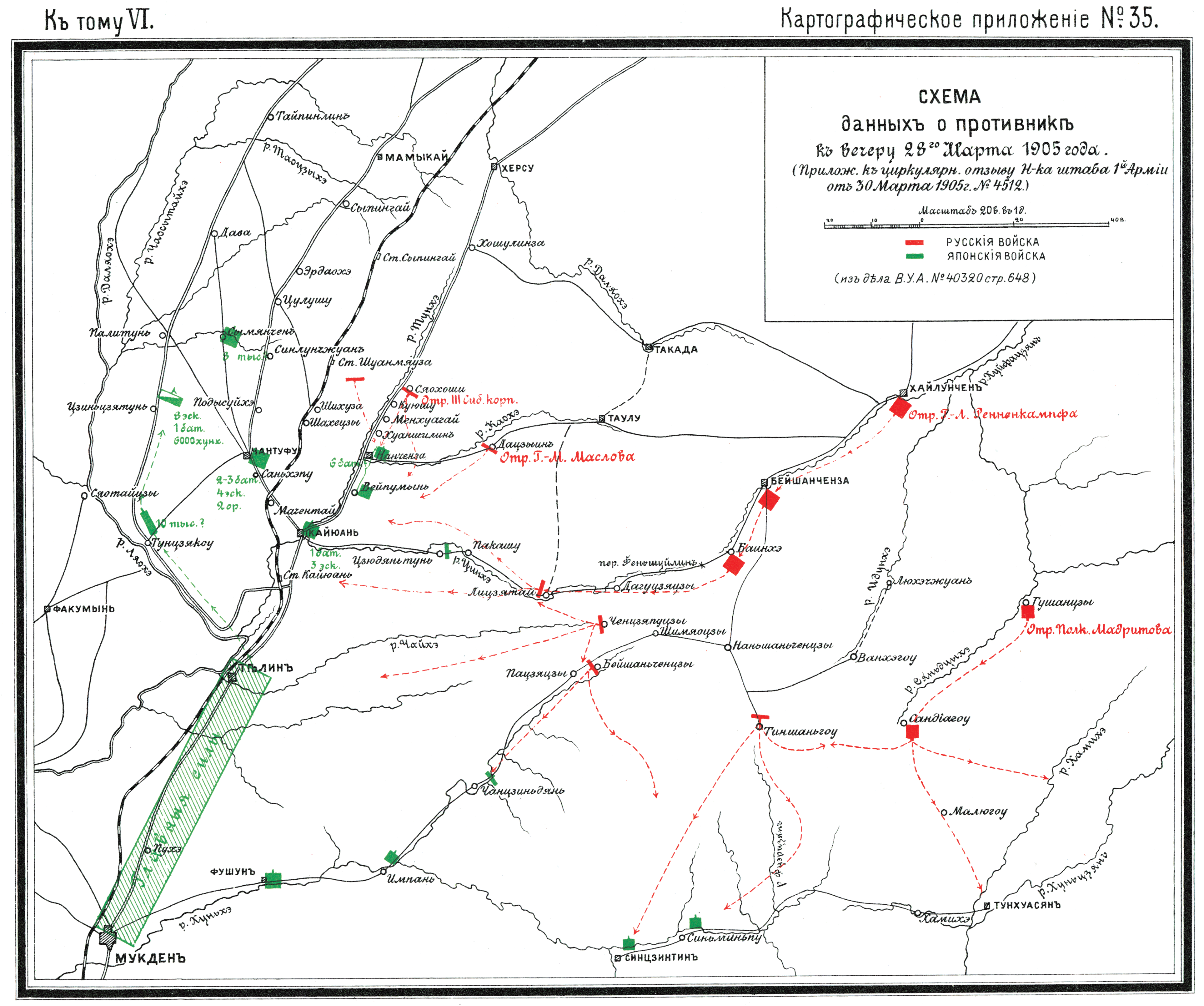 Схема данных о противнике к вечеру 28 марта 1905 года