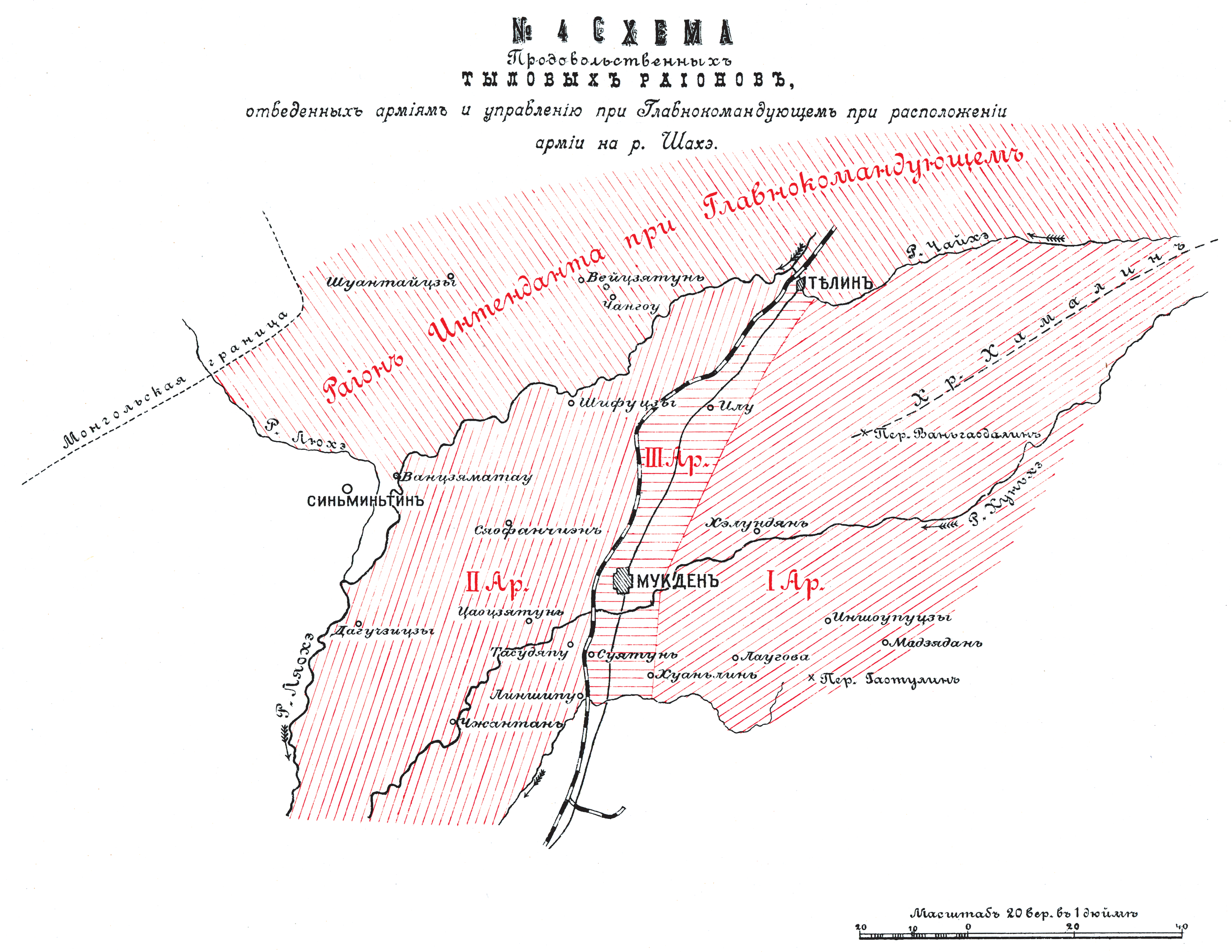 Продовольственные тыловые районы, отведенные армиям и управлению при Главнокомандующем при расположении армии на реке Шахэ