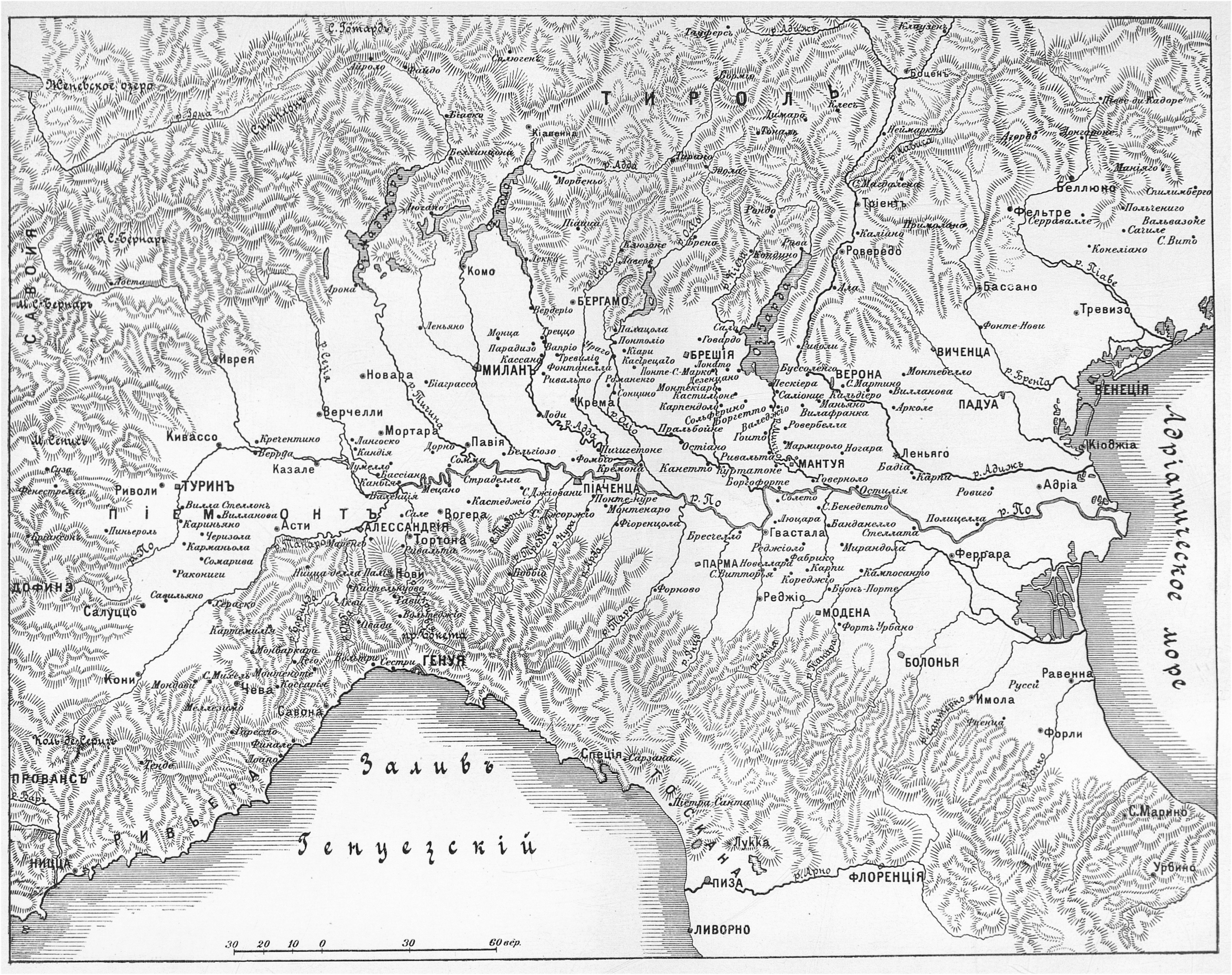 Театр военных действий итальянской кампании Бонапарте 1796-97 гг.