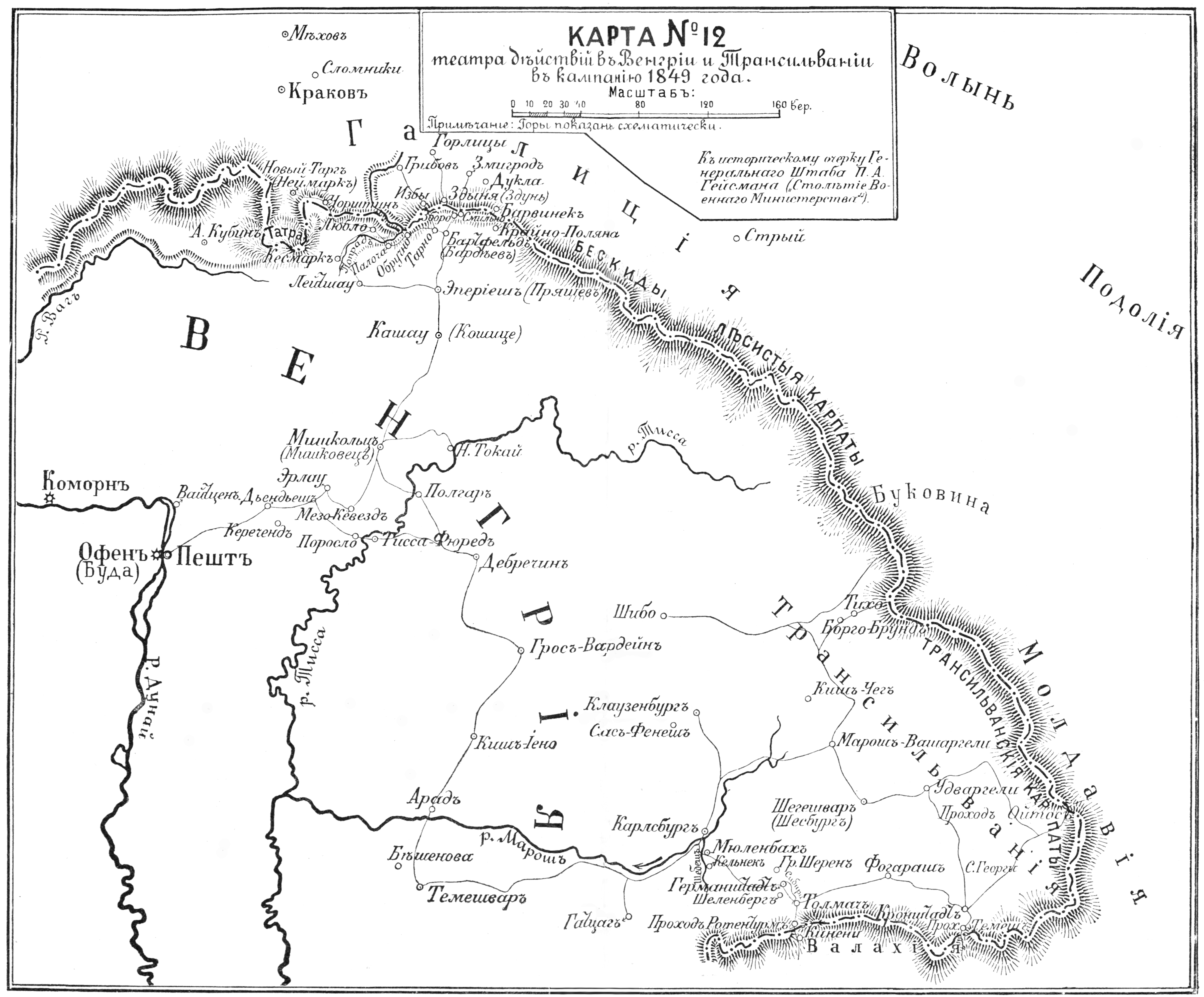 Театр действий в Венгрии и Трансильвании в кампанию 1849 года
