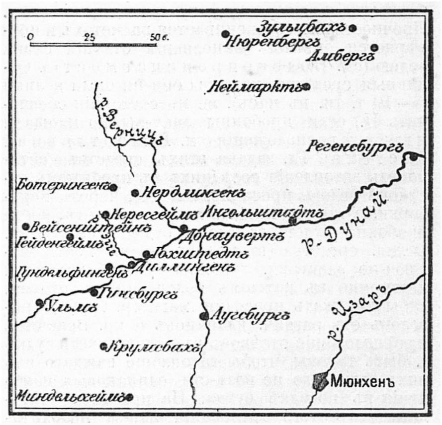 Район военных действий пятидневного боя 19-23 апреля 1809г.