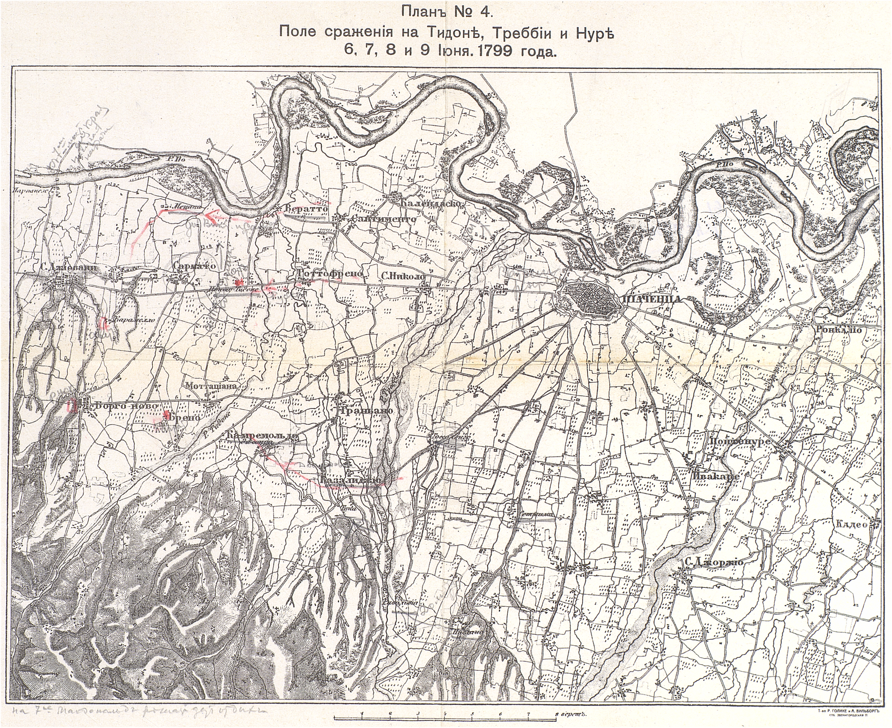 Поле сражения на Тидоне, Треббии и Нуре 6, 7, 8 и 9 июня 1799 года